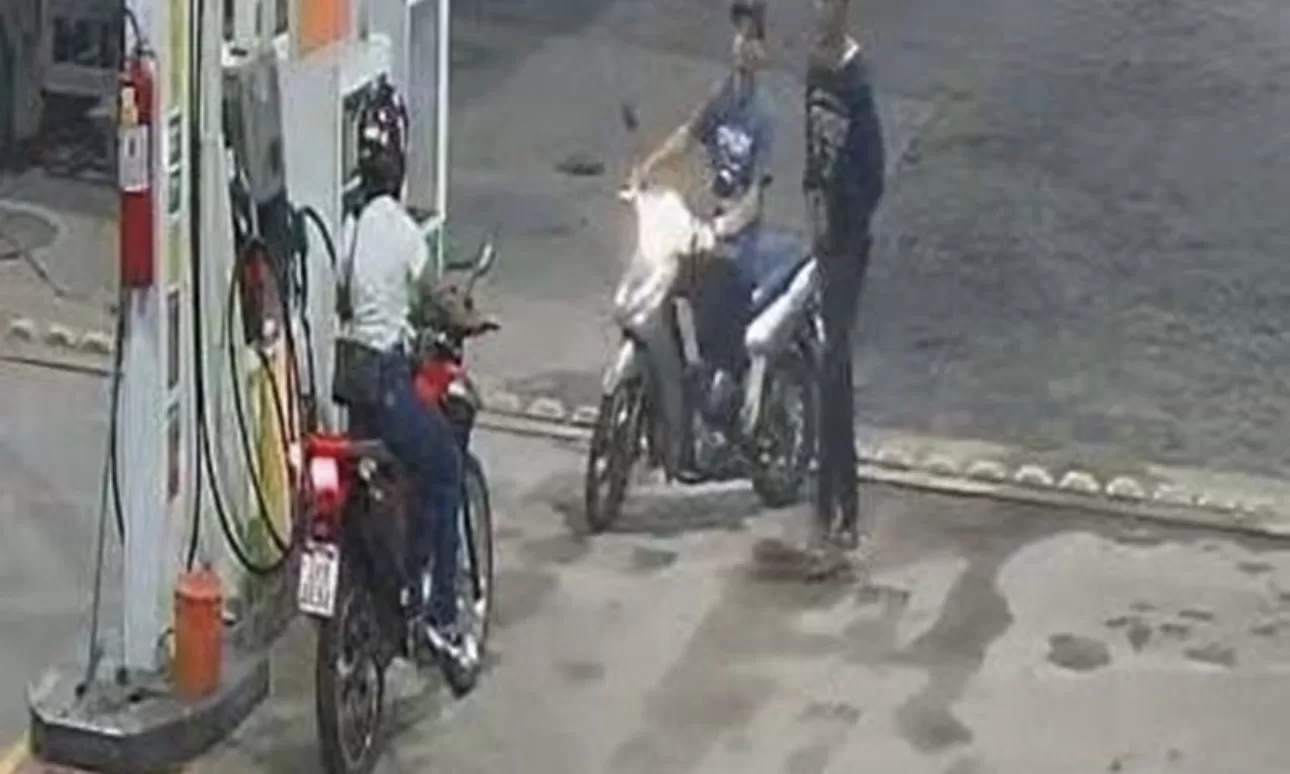 Minutos depois, os assaltantes chegaram a um posto de combustível no início da Avenida Porto Seguro usando a moto roubada.