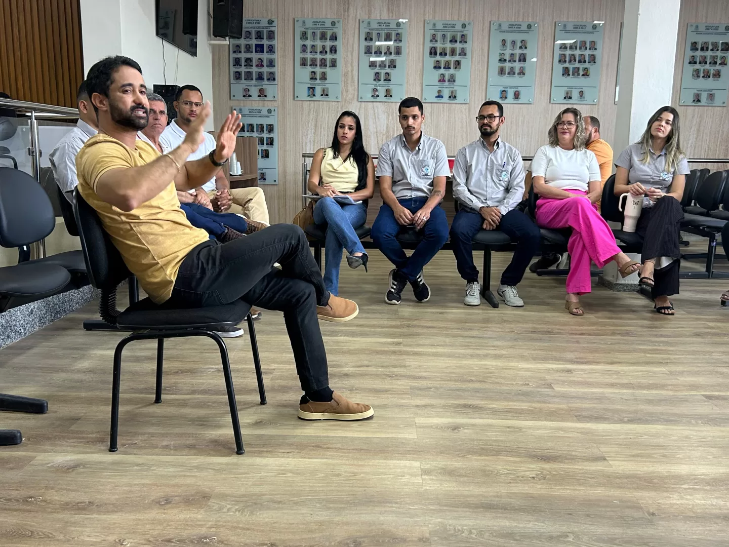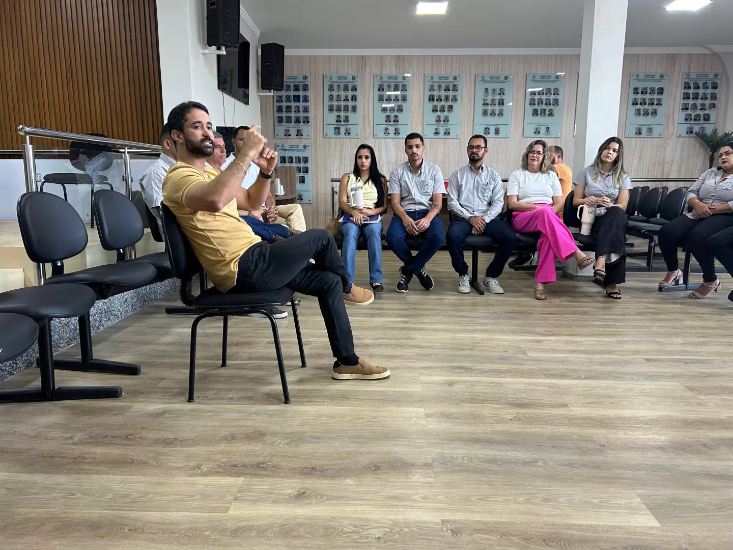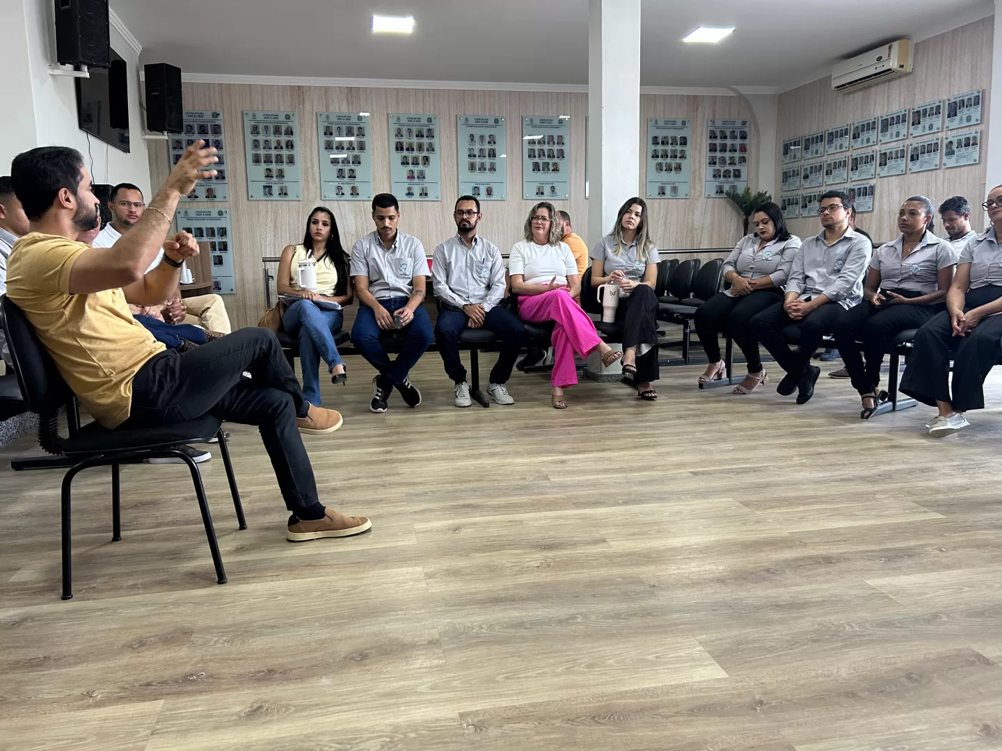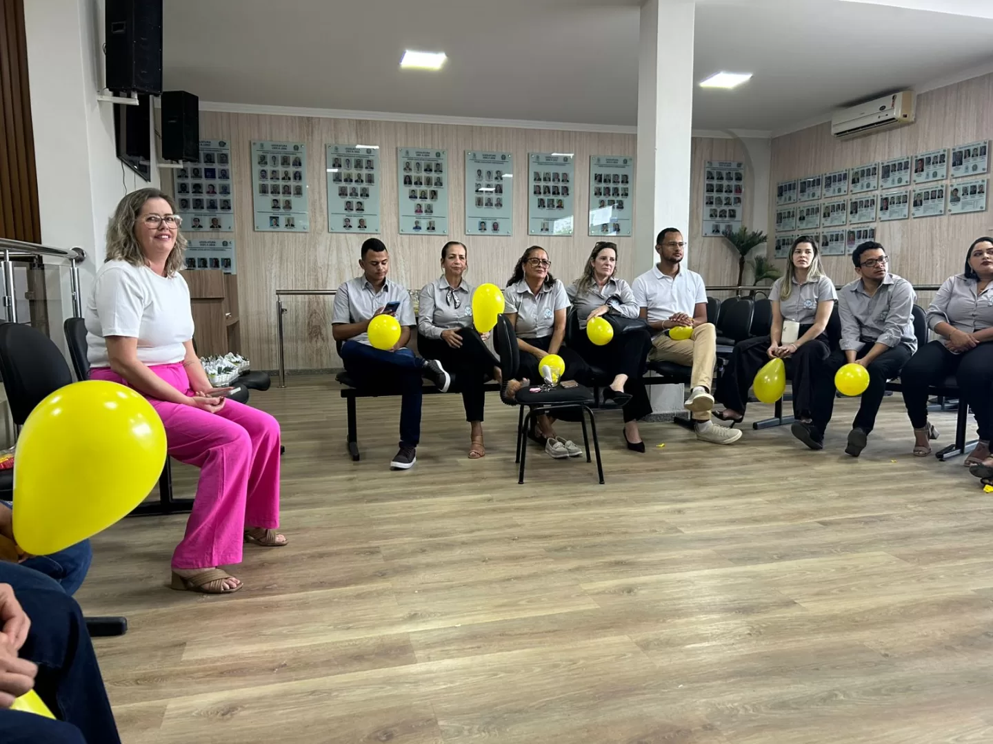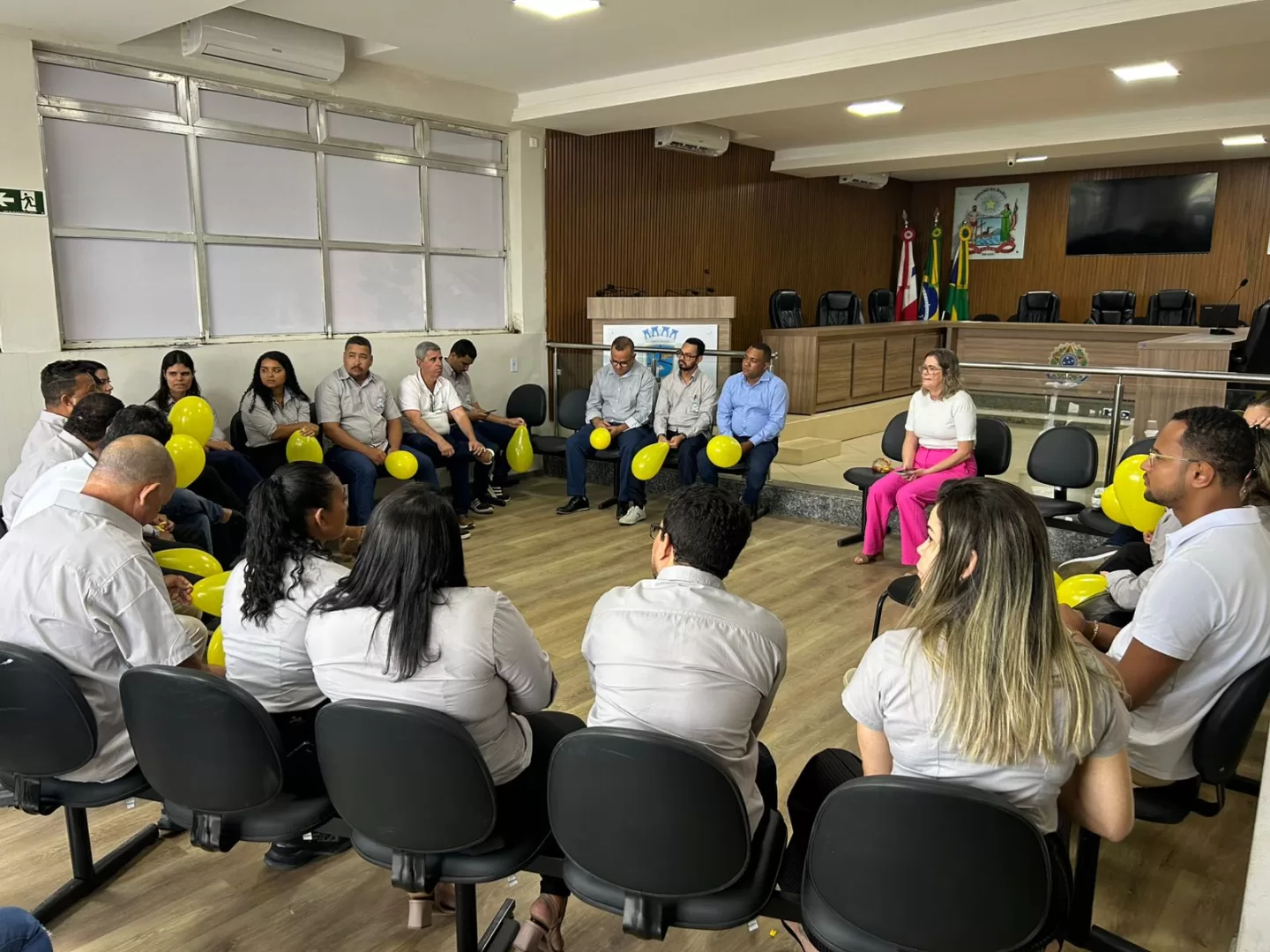 Após a palestra, foi realizada uma dinâmica com os servidores da Casa e alguns vereadores presentes, conduzida pela presidente da Câmara, Simone Sossai. A atividade teve como objetivo promover a integração, reflexão e empatia entre os participantes, reforçando o compromisso da Câmara com o bem-estar de seus colaboradores e da comunidade