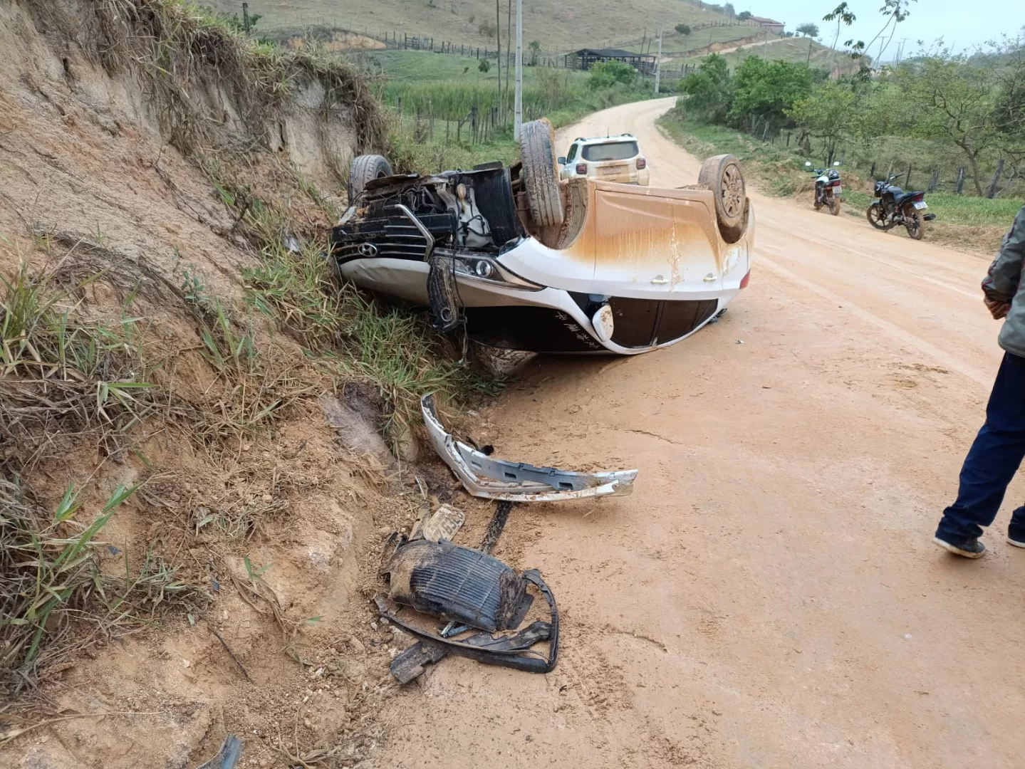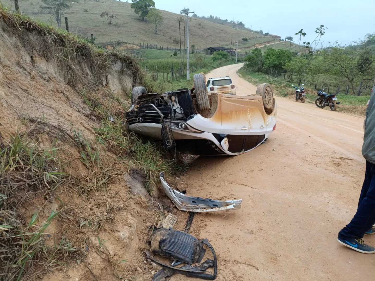 Na tarde desta sexta-feira (19), um carro de placa PZZ-288, de Belo Horizonte, tombou na BA-283, trecho que liga Guaratinga a São João do Sul, próximo à ladeira do Ribeiro.