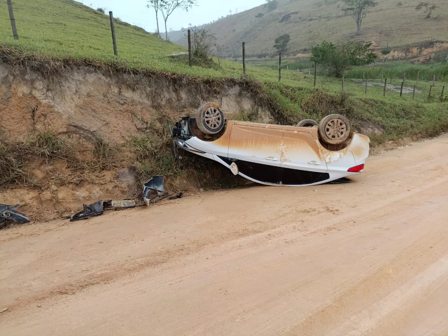 As circunstâncias do tombamento ainda não foram esclarecidas. O carro permaneceu às margens da rodovia, chamando a atenção de motoristas que passavam pelo trecho.
