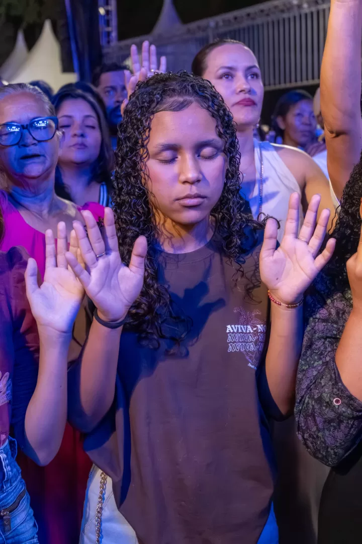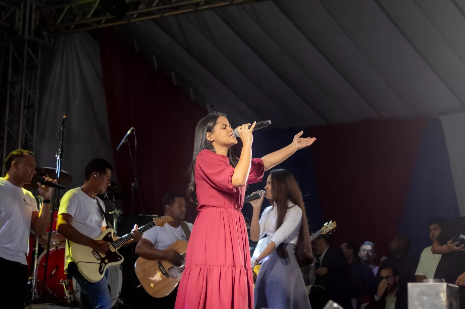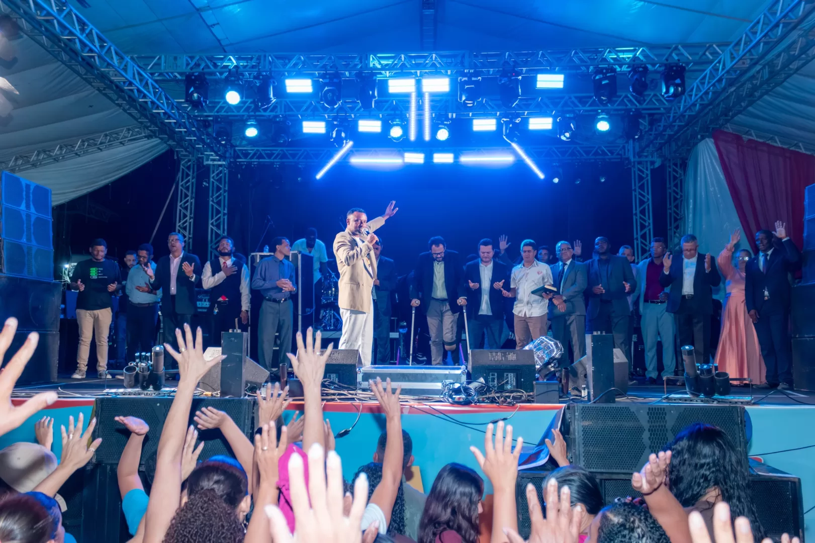 O evento, realizado em frente ao Ginásio de Esportes, reuniu uma verdadeira multidão em um ambiente de fé, comunhão e celebração. O momento foi marcado por muita adoração e louvor, com apresentações impactantes da prata da casa Banda Adorar, da cantora Nilane Silva e do cantor e pastor Samuel Mariano, que conduziu a multidão em momentos inesquecíveis de louvor e entrega espiritual.