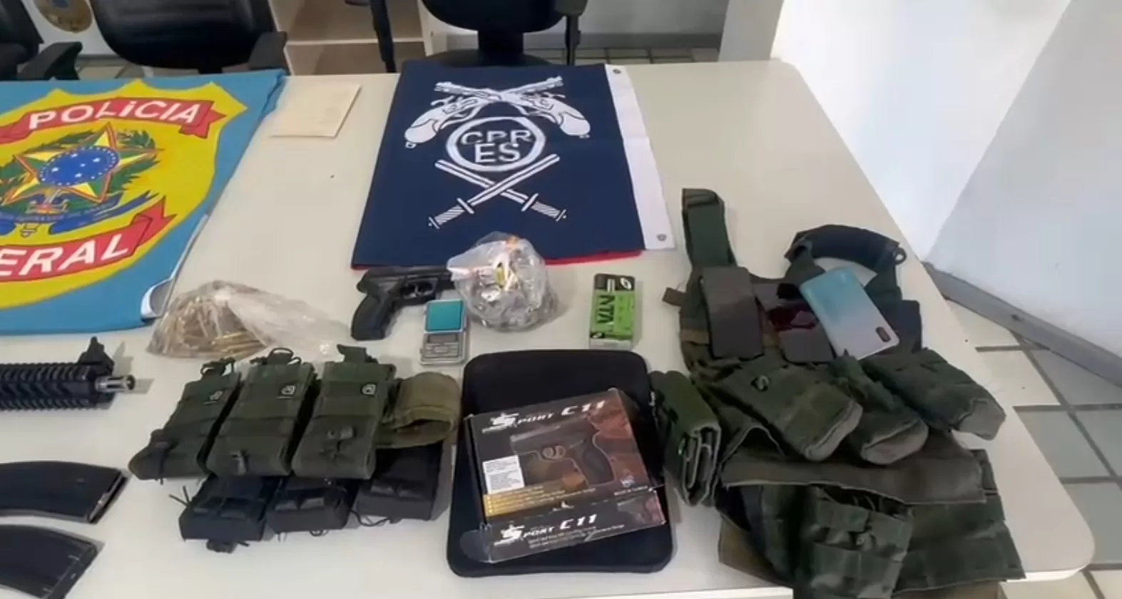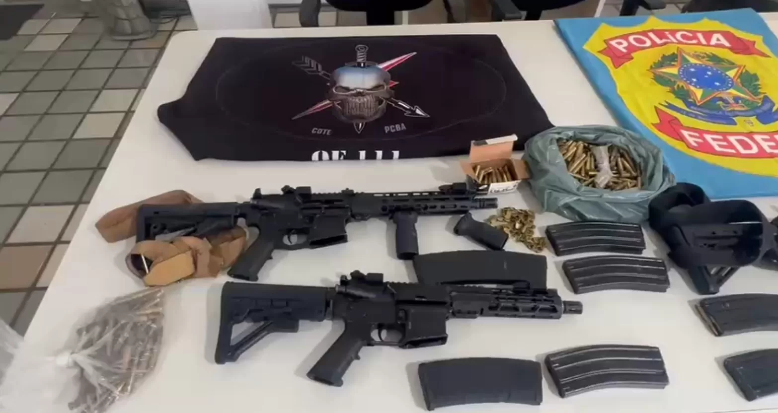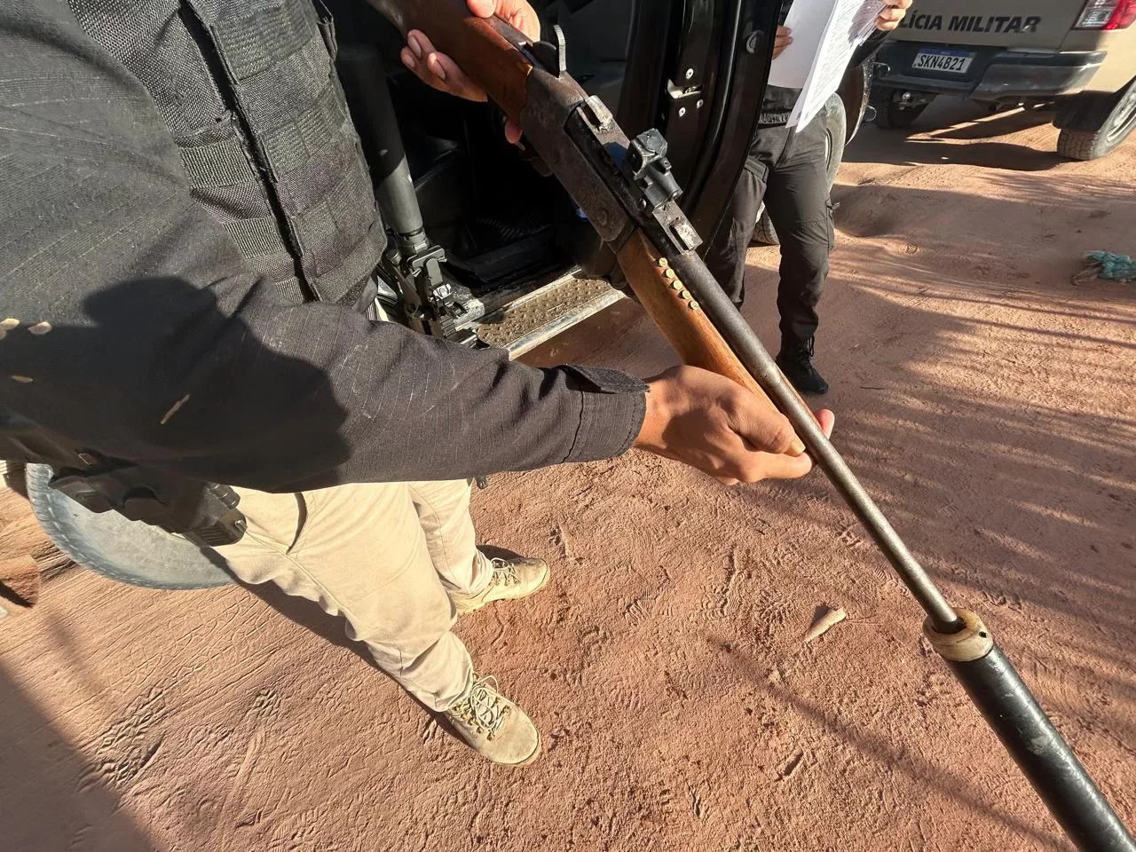No total, foram apreendidos cinco fuzis, quatro pistolas, um rifle calibre 22, drogas, munições de grosso calibre e duas motocicletas com restrição de furto/roubo.