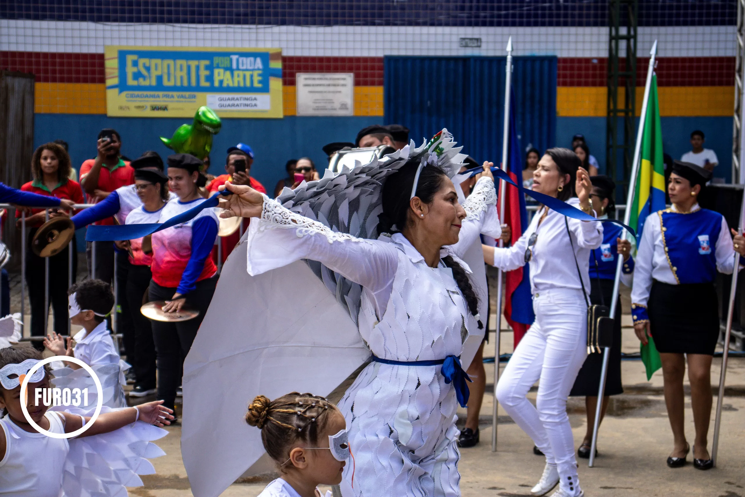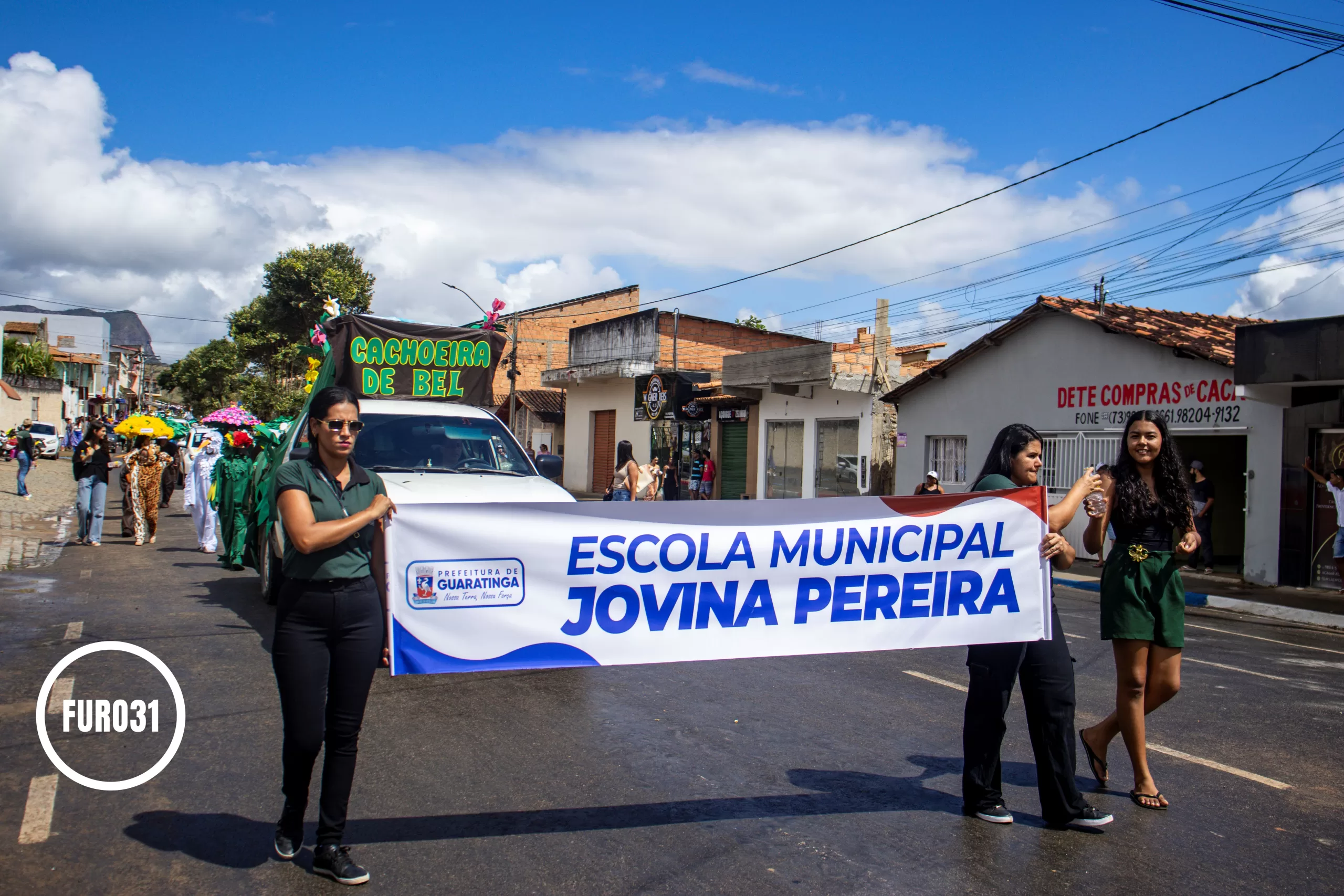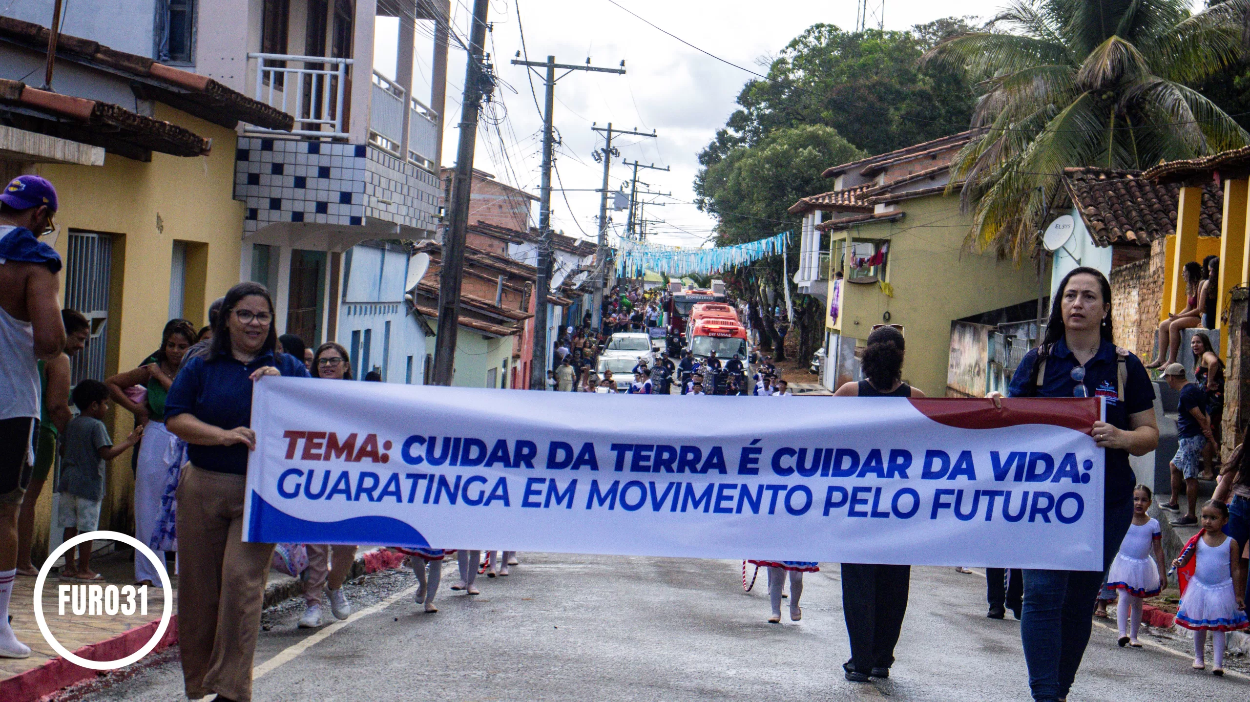 Nesta sexta-feira (29), Guaratinga viveu uma manhã marcante de celebração à cultura, à educação e ao meio ambiente com o Desfile Cívico que teve como tema “Cuidar da terra é cuidar da vida: Guaratinga em movimento pelo futuro”. O evento foi realizado pela Prefeitura Municipal, por meio da Secretaria de Educação.
