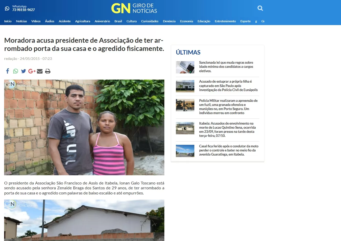 O presidente da Associação São João Batista, em Itabela, Ionan Galo Toscano, possui um histórico de denúncias por comportamento agressivo. O dirigente da Casa dos Idosos, que recentemente foi acusado de agredir uma médica durante um plantão no Hospital Frei Ricardo, já havia se envolvido em um caso semelhante em 2015, quando foi acusado de invadir uma residência e agredir uma moradora no bairro Irmã Dulce.