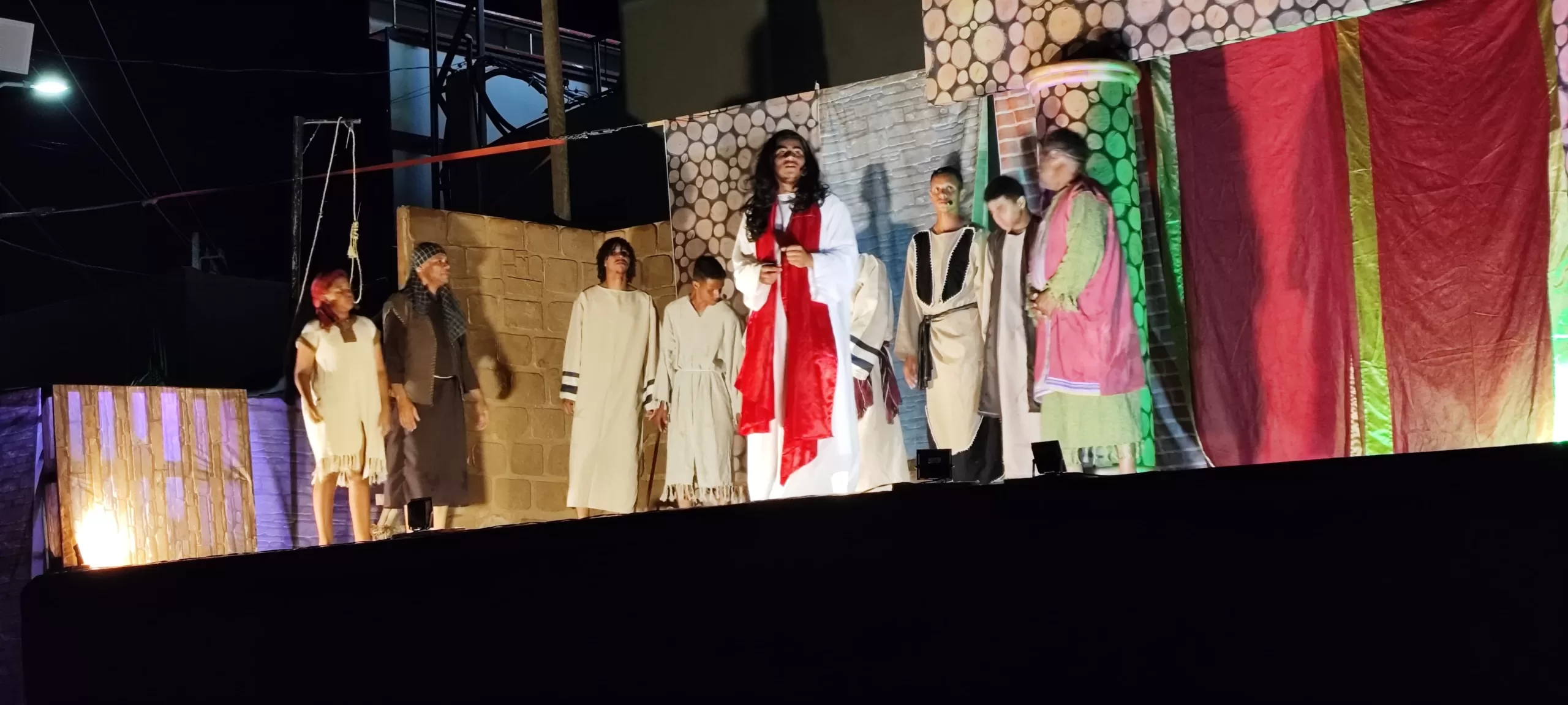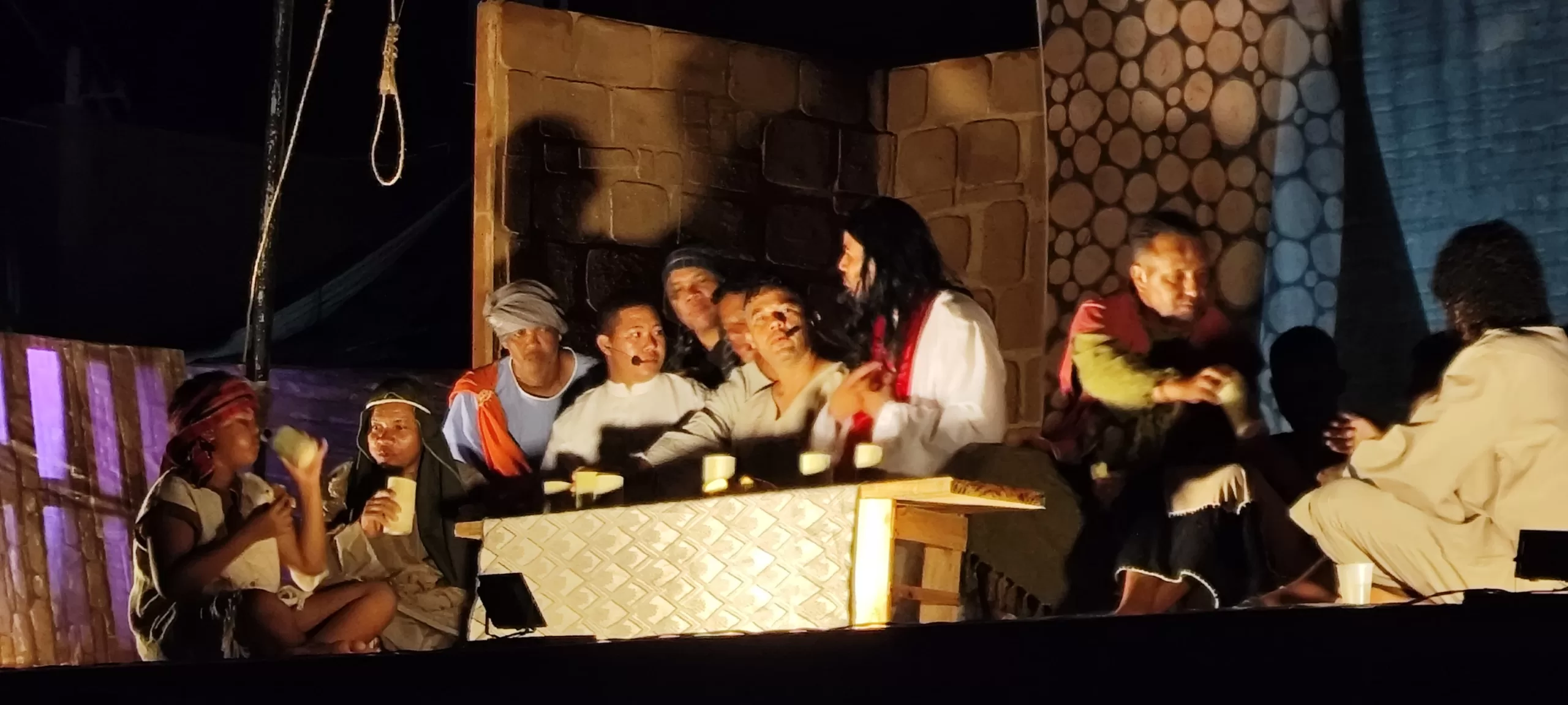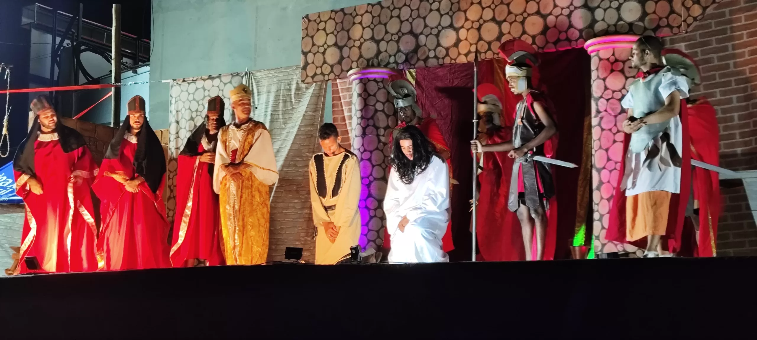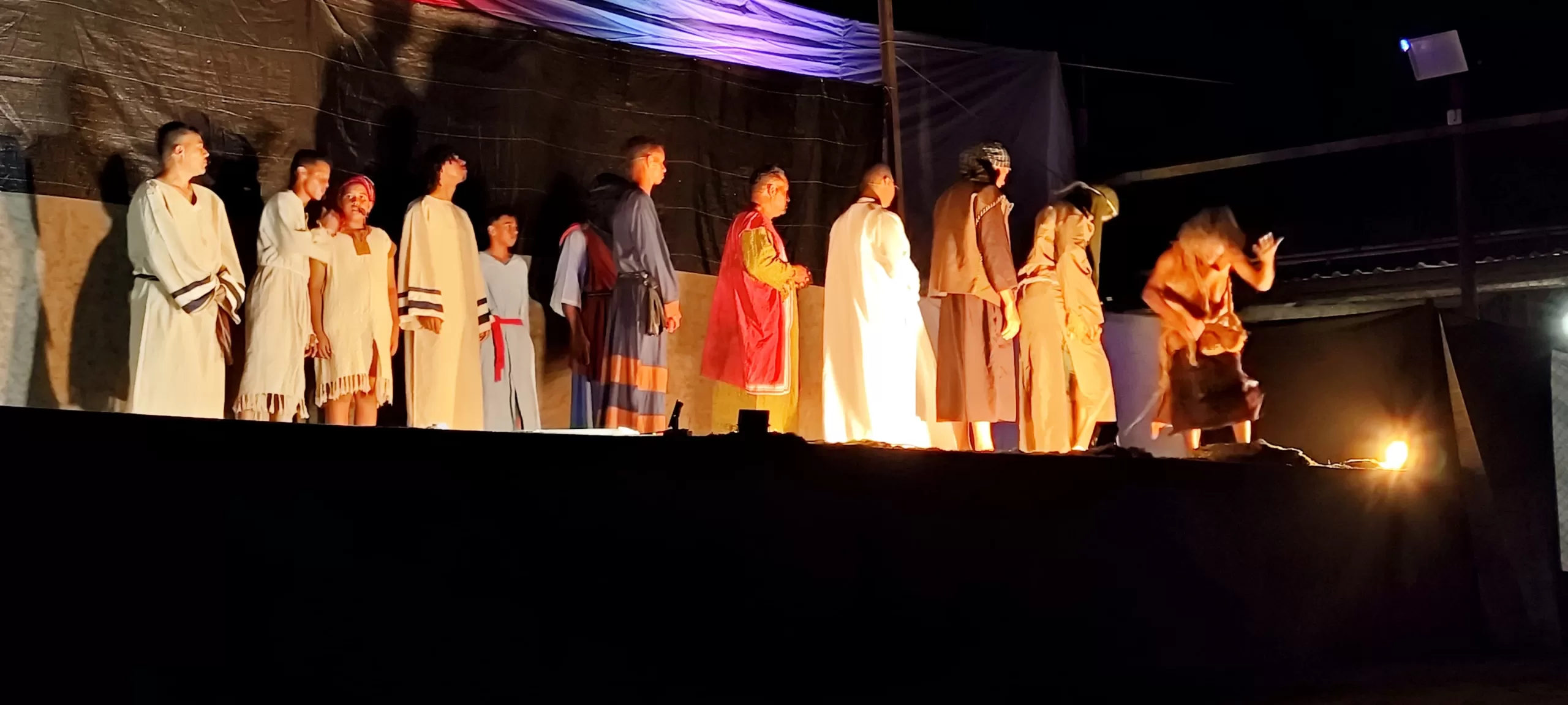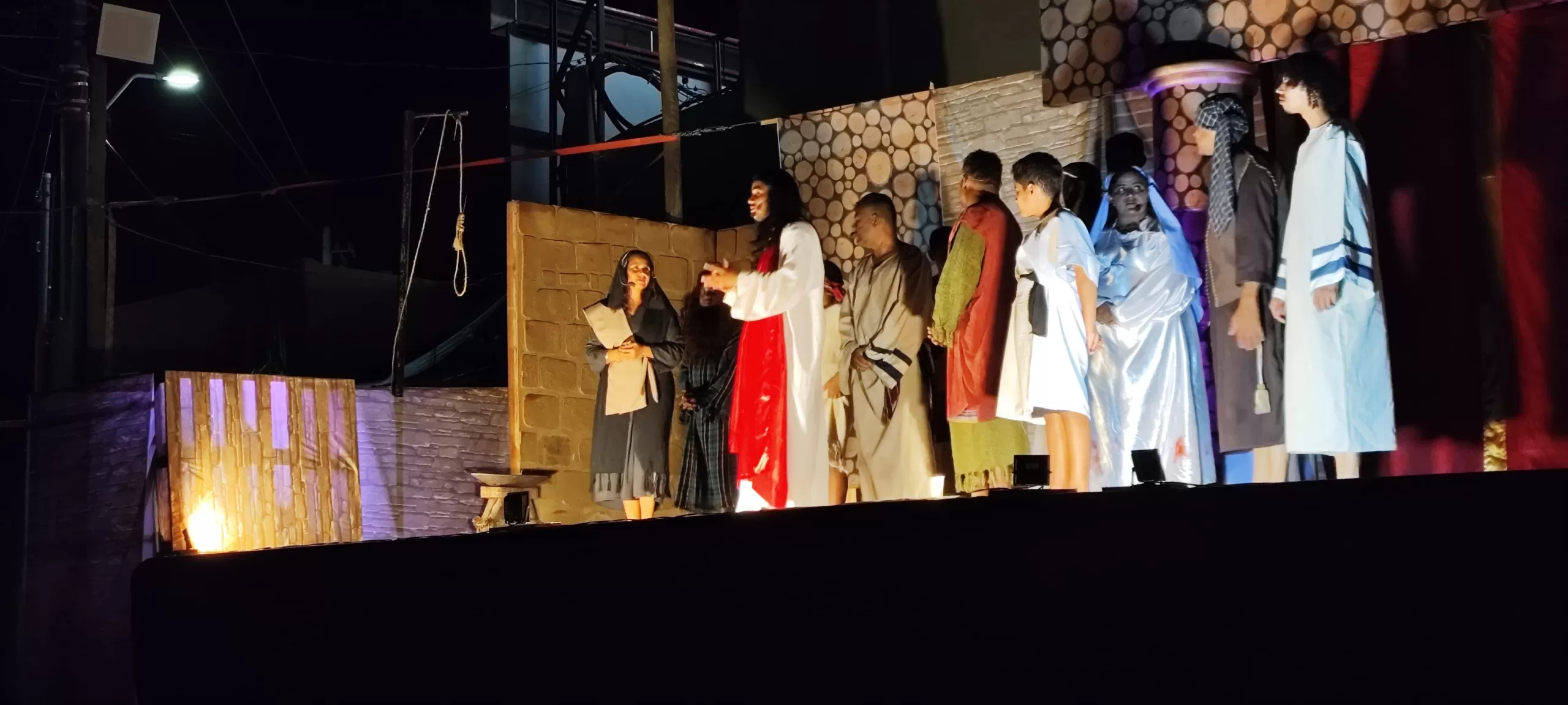 O espetáculo retratou os últimos momentos de Jesus Cristo, com cenas que abordaram desde a condenação até a crucificação, combinando teatro e elementos religiosos. Aproximadamente 50 pessoas, entre adultos e crianças, participaram da encenação, que emocionou o público presente.