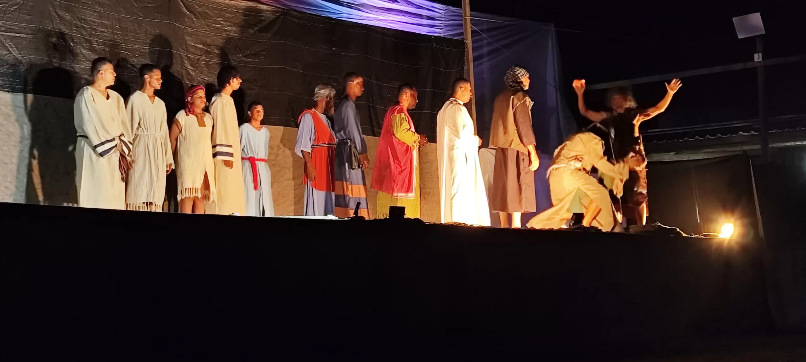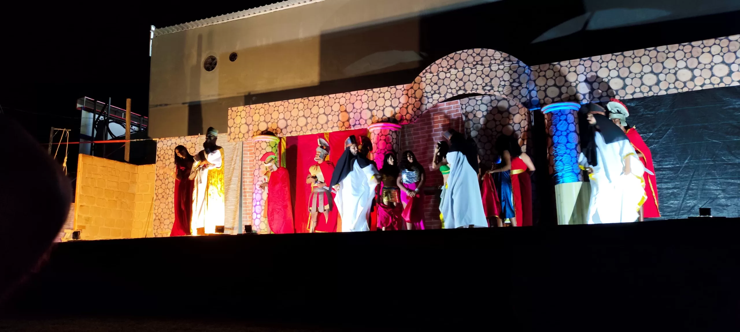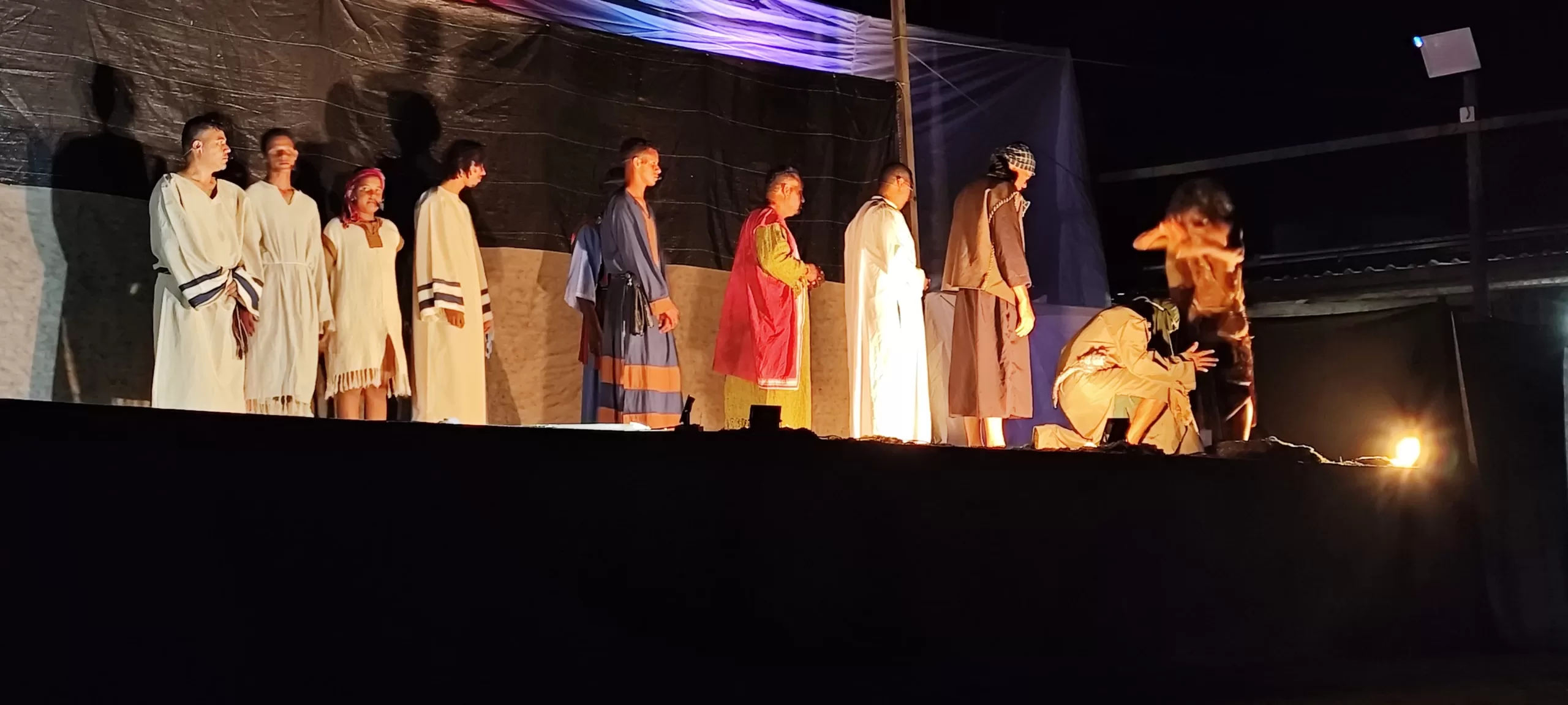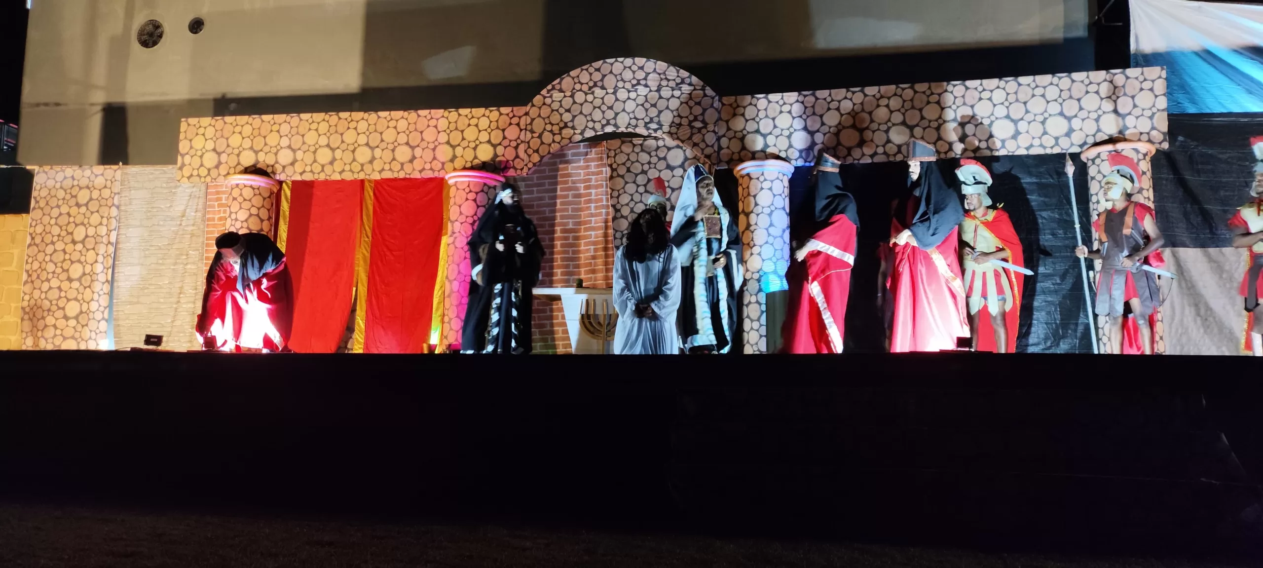 O espetáculo retratou os últimos momentos de Jesus Cristo, com cenas que abordaram desde a condenação até a crucificação, combinando teatro e elementos religiosos. Aproximadamente 50 pessoas, entre adultos e crianças, participaram da encenação, que emocionou o público presente.