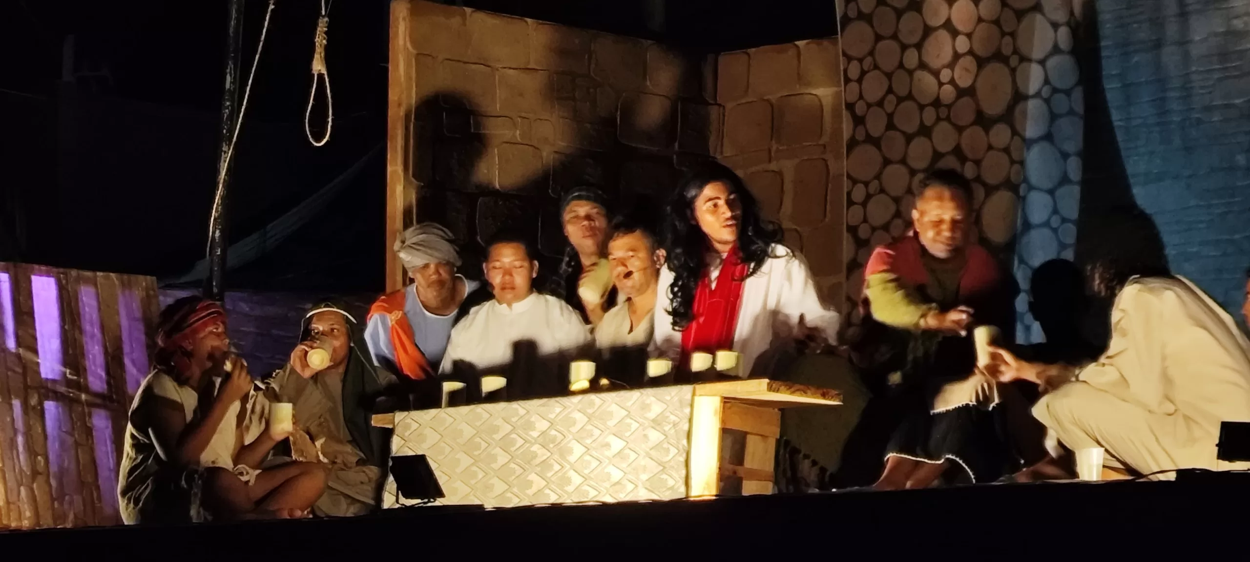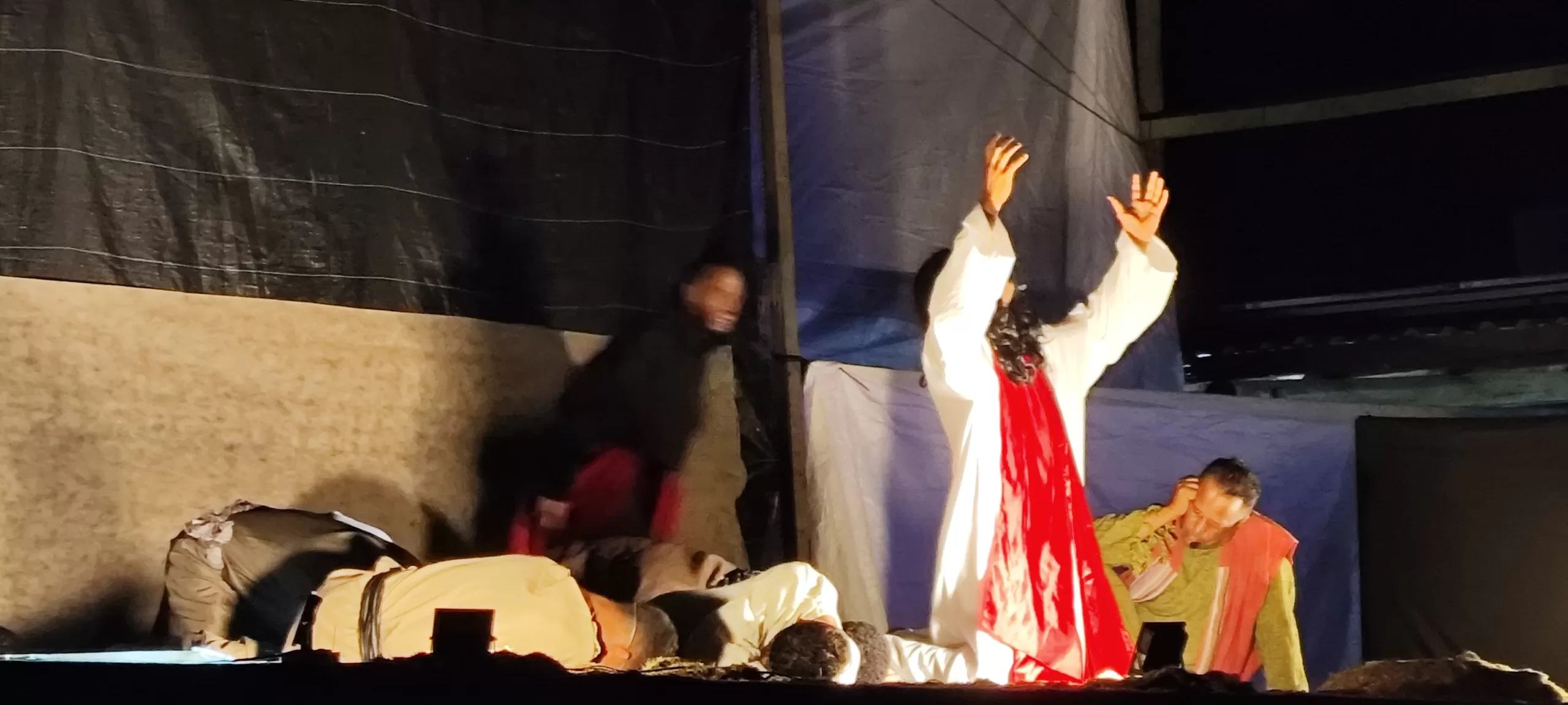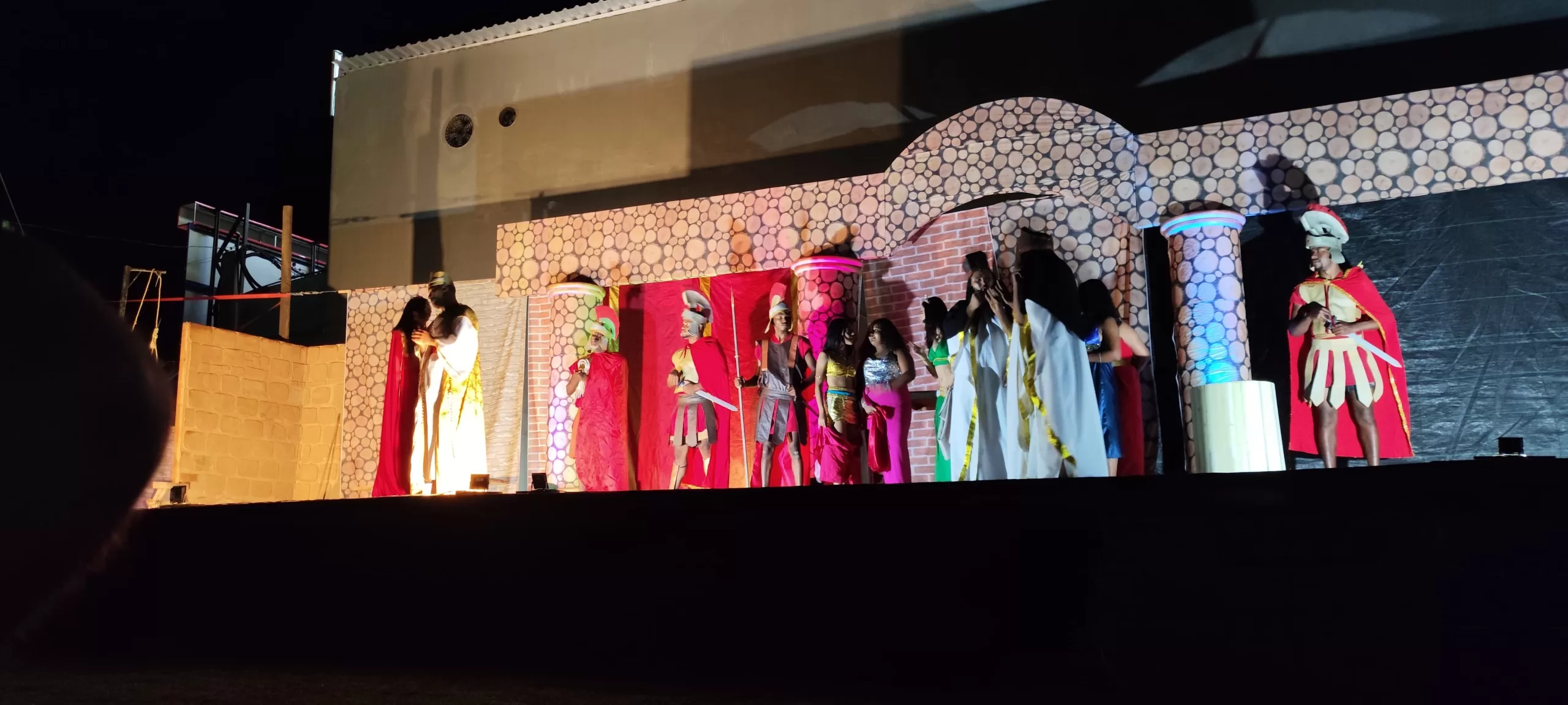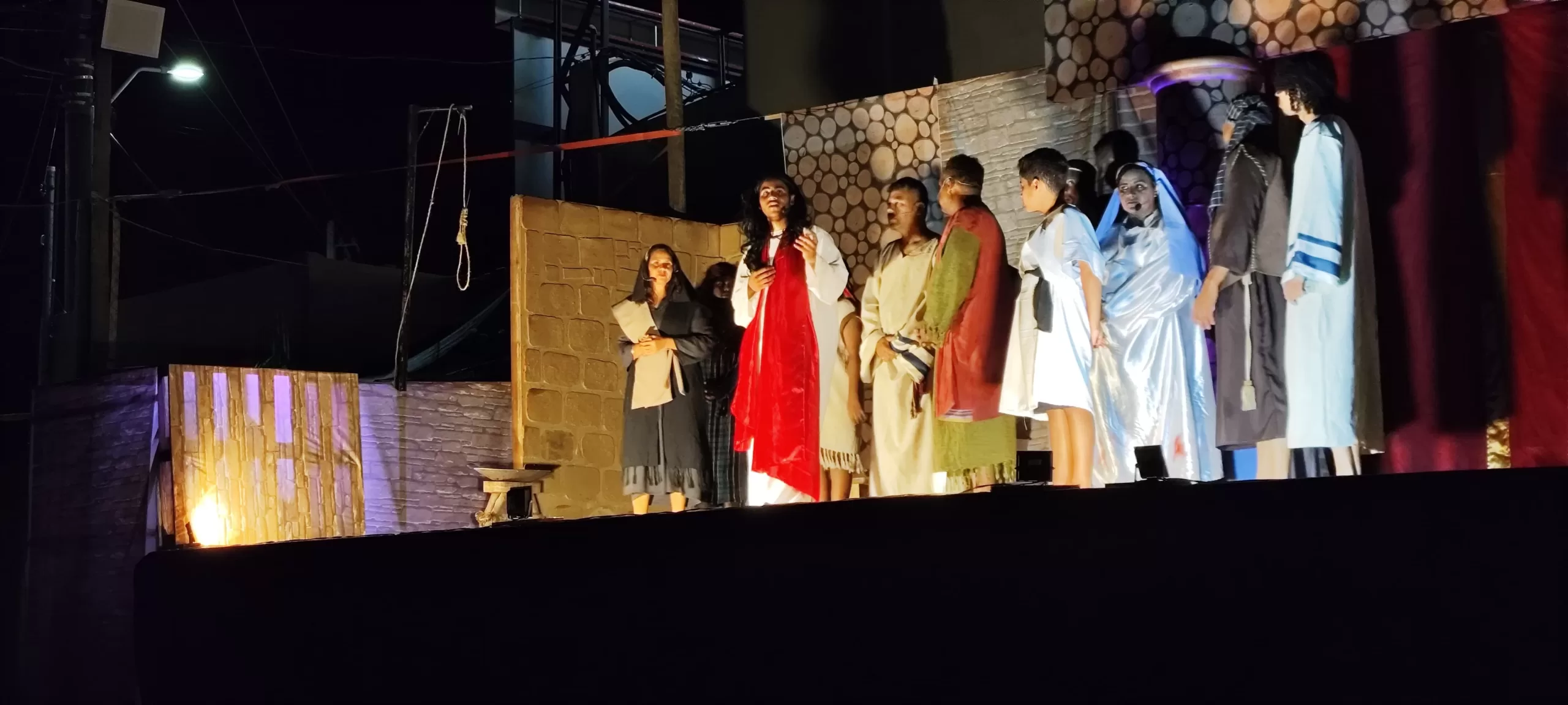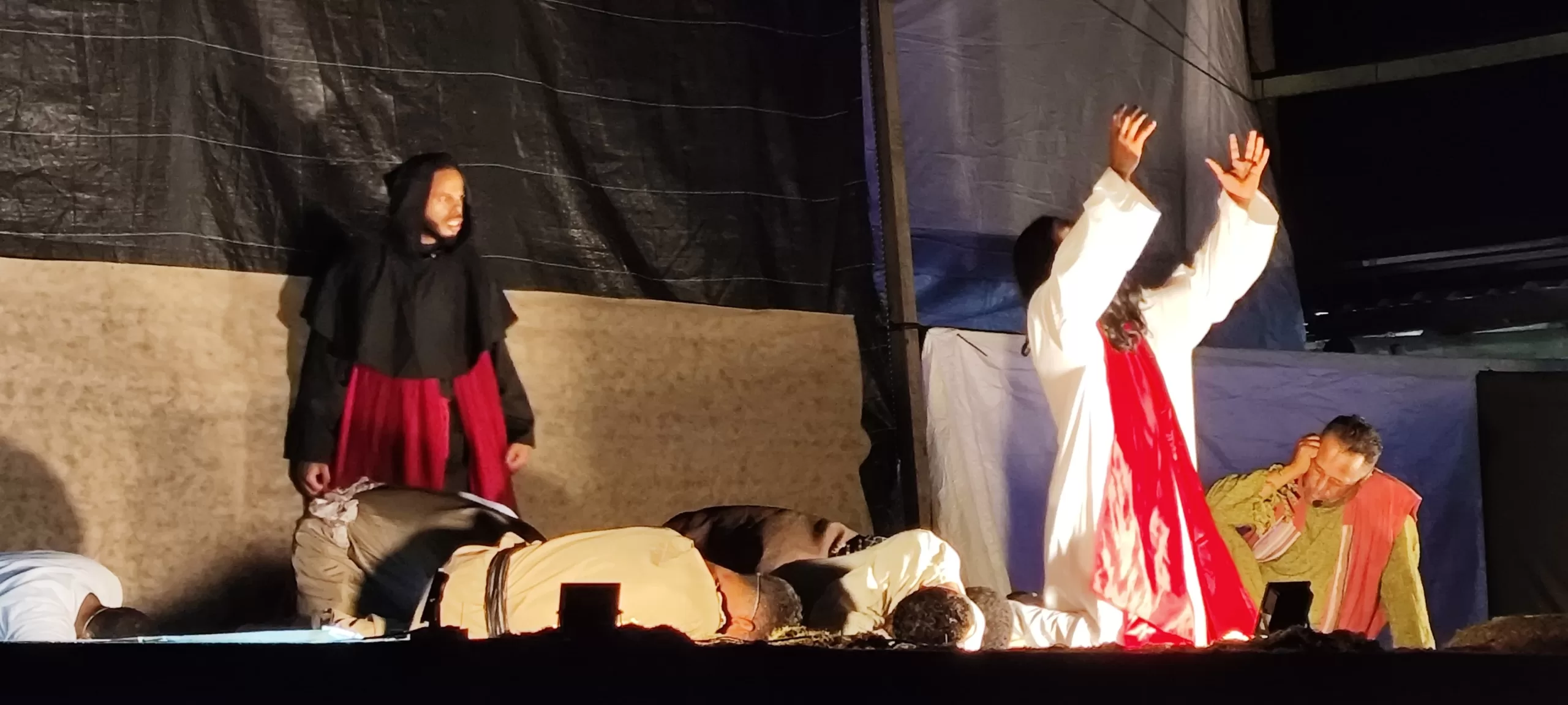 O espetáculo retratou os últimos momentos de Jesus Cristo, com cenas que abordaram desde a condenação até a crucificação, combinando teatro e elementos religiosos. Aproximadamente 50 pessoas, entre adultos e crianças, participaram da encenação, que emocionou o público presente.