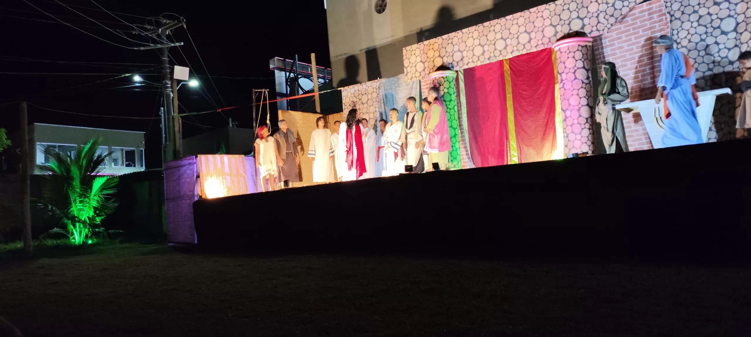 A iniciativa integrou as celebrações do período religioso e reforçou valores como união, partilha e cuidado com o próximo. O espetáculo foi realizado por meio de uma parceria entre a empresa Indústria Bom Jesus e o Grupo de Teatro Circo de Pulgas, envolvendo artistas e voluntários da comunidade.