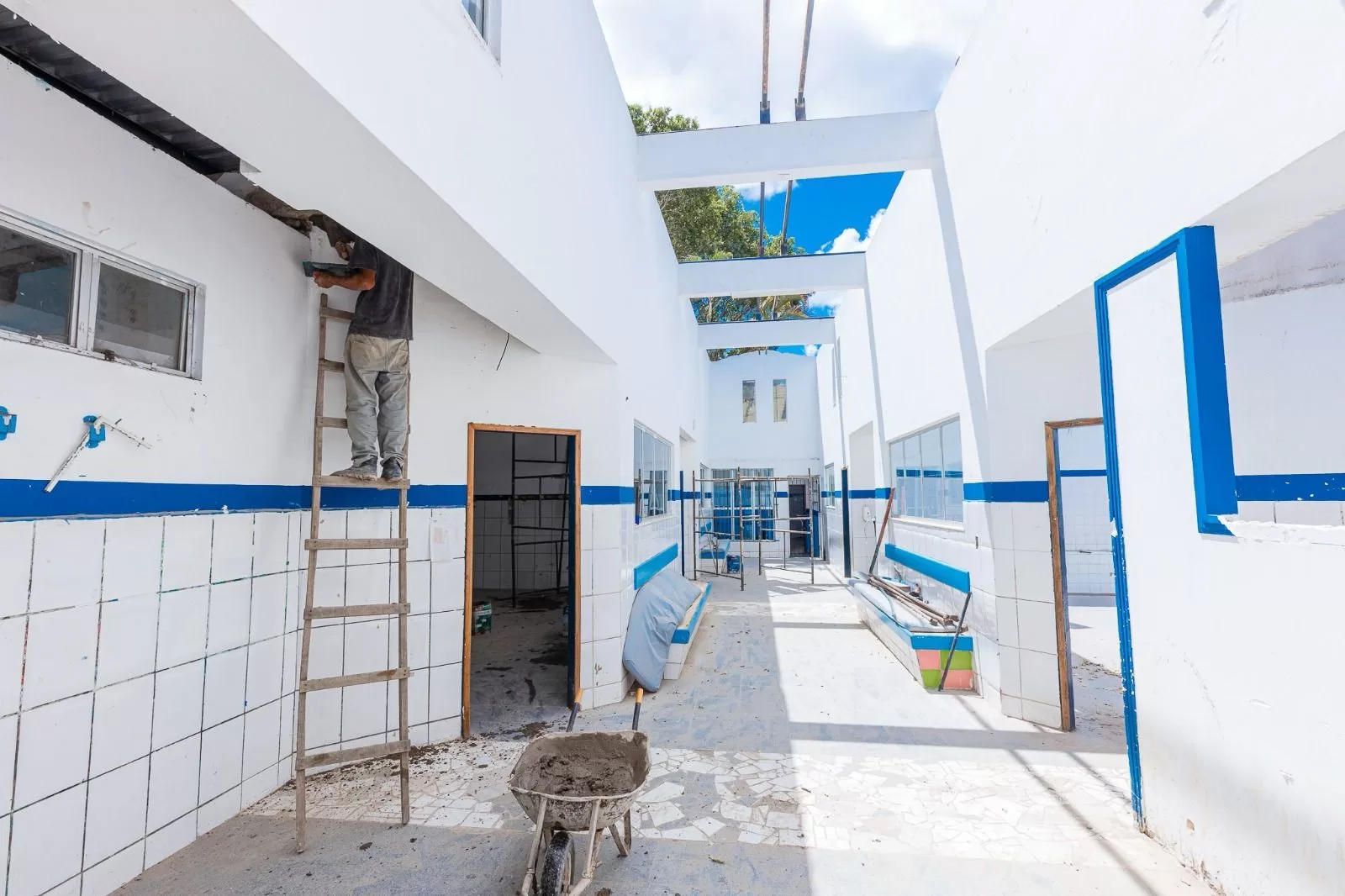 A estrutura também contará com ambientes de descanso, cozinha equipada, setor exclusivo para preparo da merenda escolar e lavanderia. Paralelamente, a equipe realizou melhorias importantes, como a reestruturação do telhado, a instalação de forro de gesso e a modernização da rede elétrica.