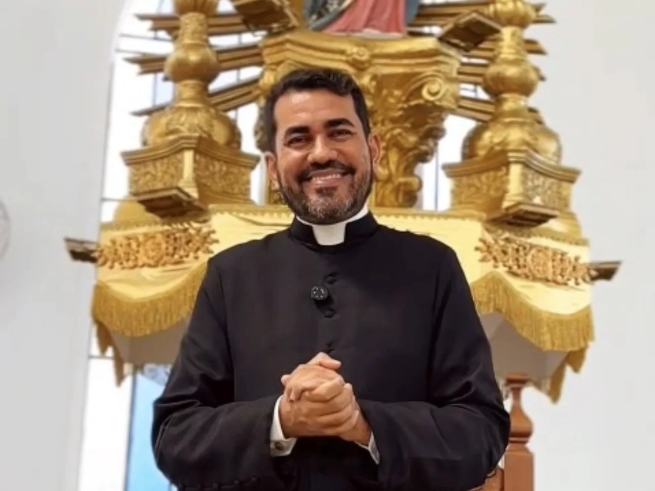 Pároco Pe. Diego Oliveira Reis anuncia programação da festa de Nossa Senhora Auxiliadora 2026 em vídeo divulgado nas redes sociais. (Foto: Reprodução)