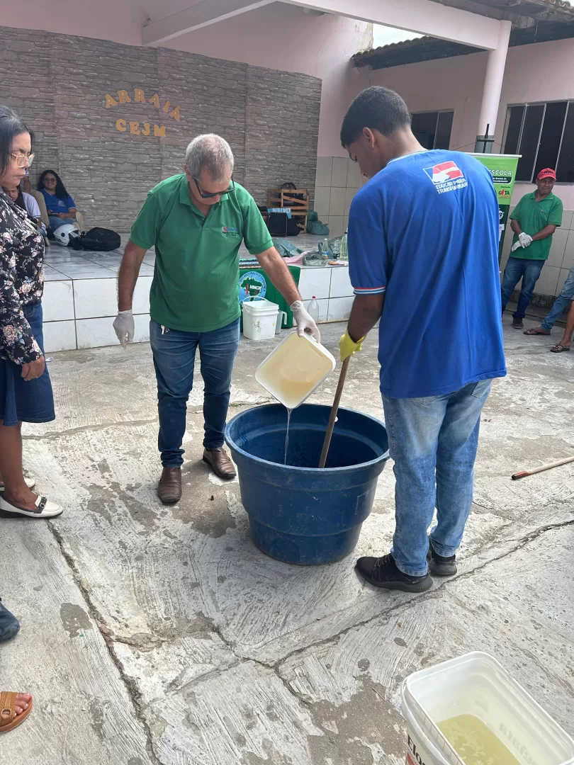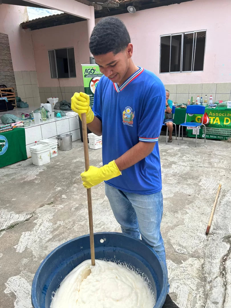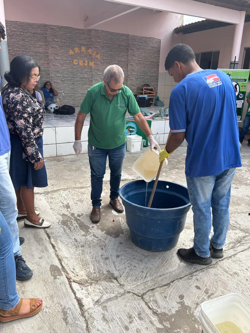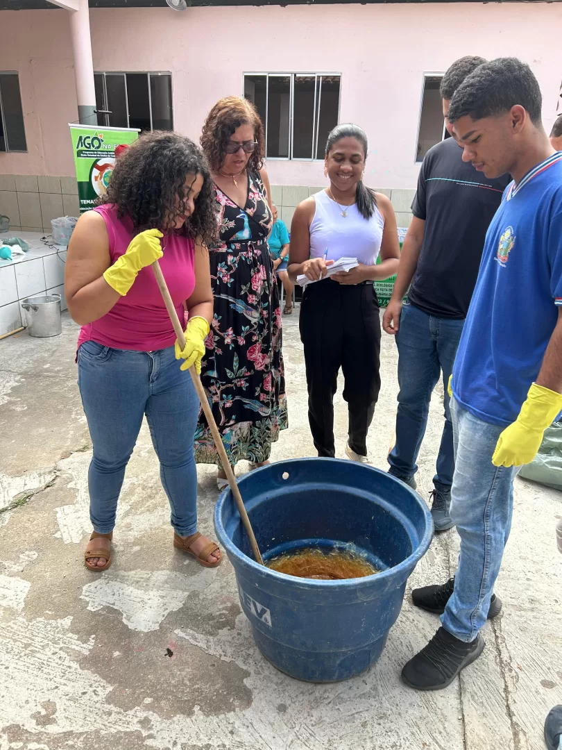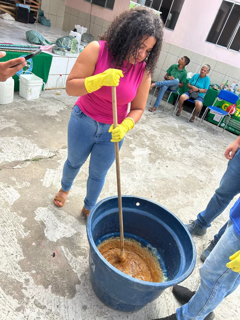 Um dos destaques da programação aconteceu nesta quinta-feira (24), quando os alunos participaram de uma oficina de sabão artesanal, aprendendo a reutilizar óleo de cozinha para a produção do item de higiene. A atividade integrou a gincana e teve como objetivo ensinar, na prática, como transformar resíduos em algo útil e comercializável.
