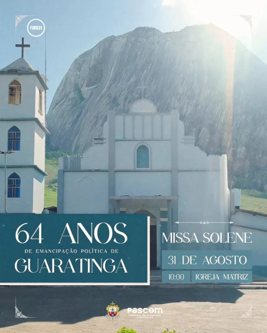 A Prefeitura de Guaratinga divulgou neste sábado (23) a programação oficial do Guará AgroFest 2025, evento que vai celebrar os 64 anos de emancipação política do município com atividades religiosas, cívicas, culturais, esportivas e grandes shows musicais. A festa acontece de 27 a 31 de agosto, em diferentes pontos da cidade, com destaque para o palco principal montado em frente ao Ginásio de Esportes.