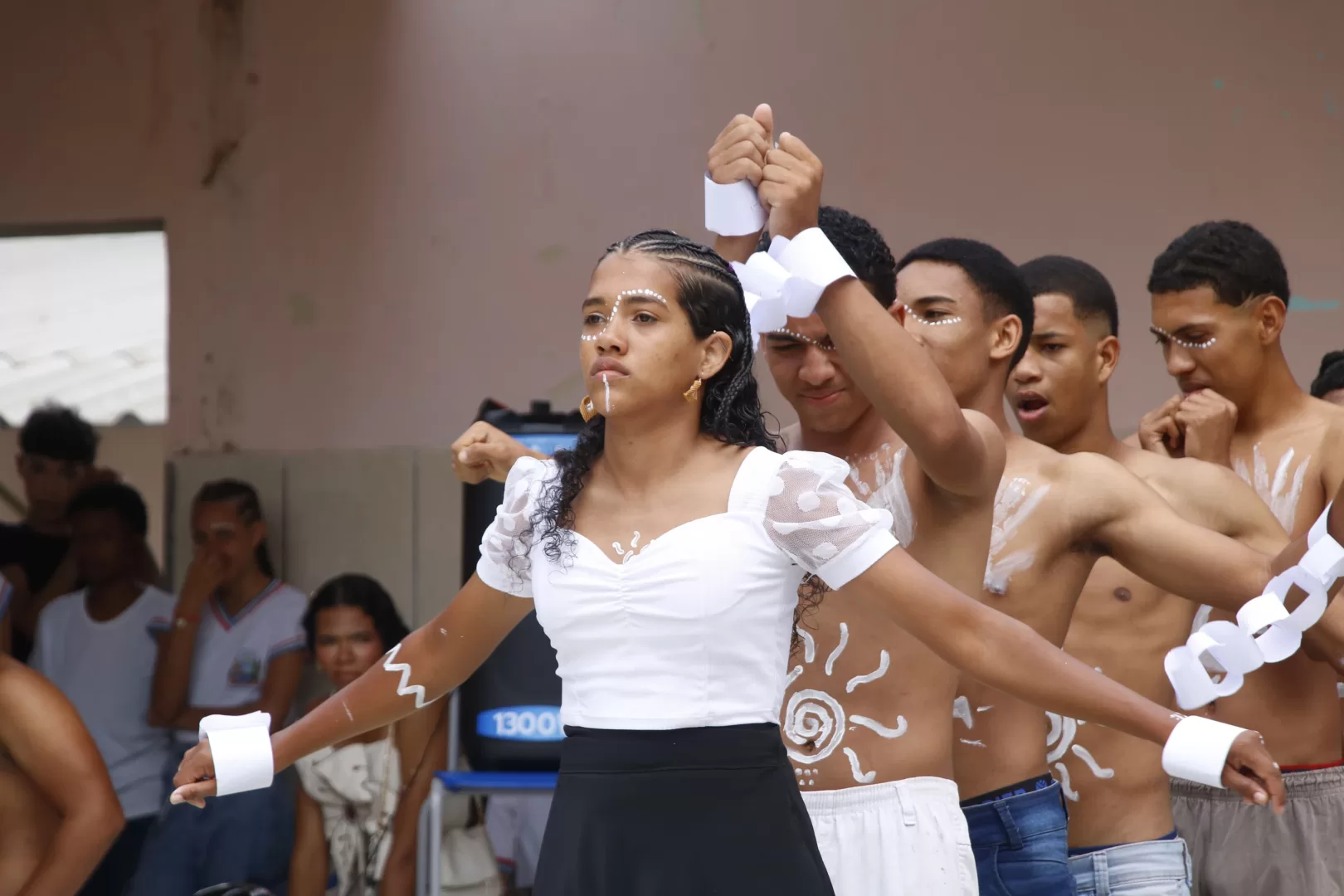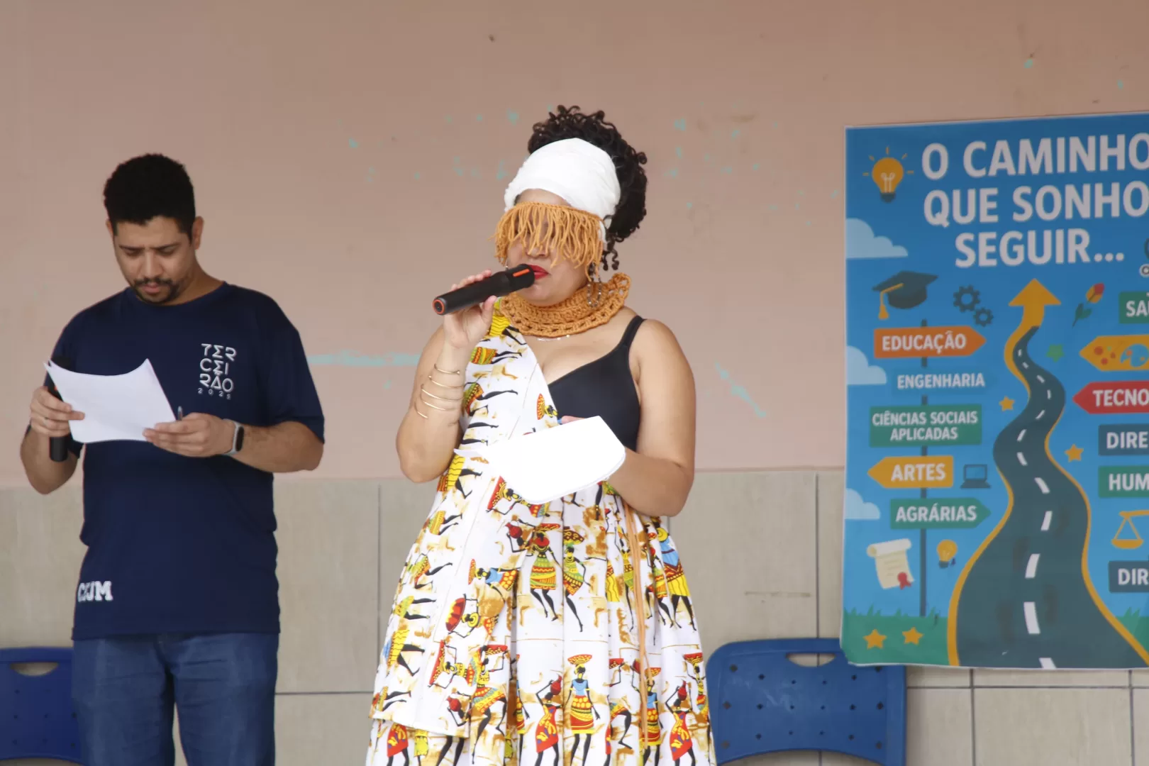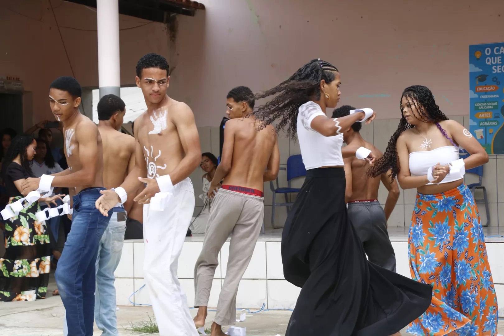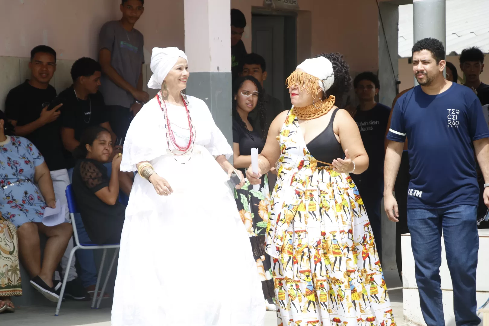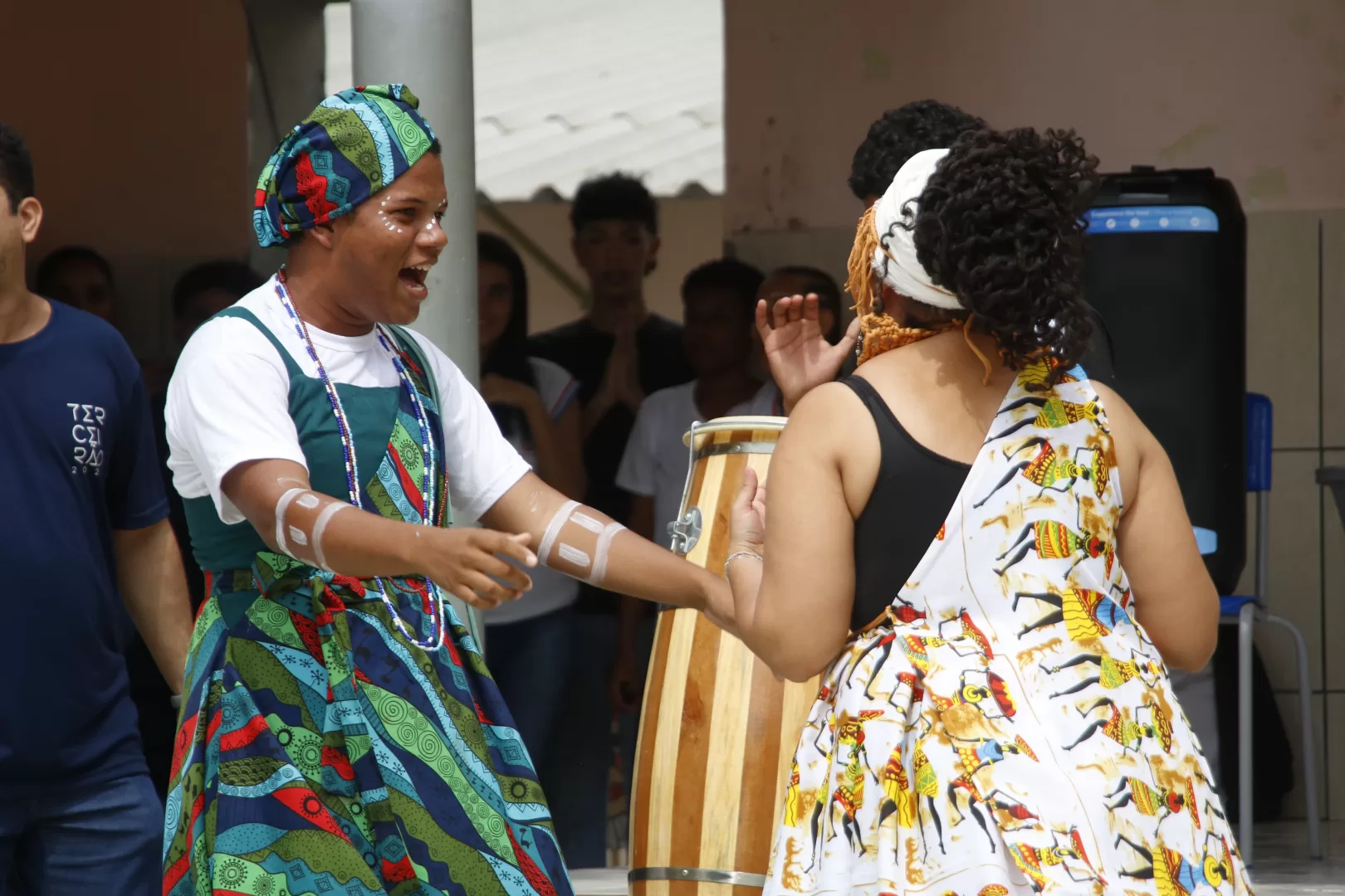 No período da tarde, o clima cultural continuou com a participação da fanfarra da escola, roda de capoeira e uma oficina especial de tranças, atraindo a atenção dos estudantes e visitantes.
