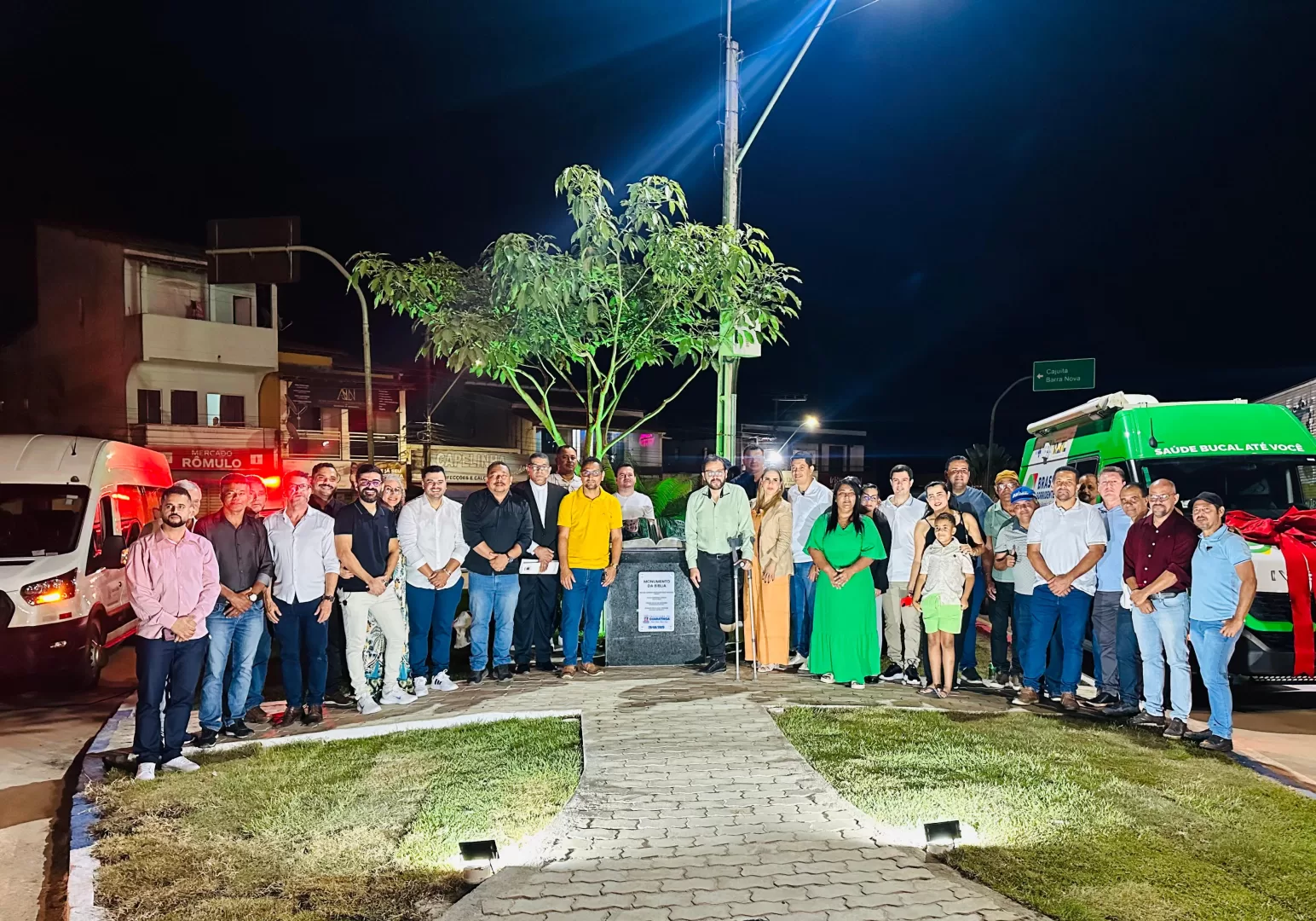 Na noite desta quarta-feira (28), o prefeito Rafael Gandhi inaugurou, na Praça do Mercado, no centro de Guaratinga, o Monumento da Bíblia, em um evento que contou com a presença de líderes religiosos, entre eles o padre da paróquia local e pastores de diferentes denominações.