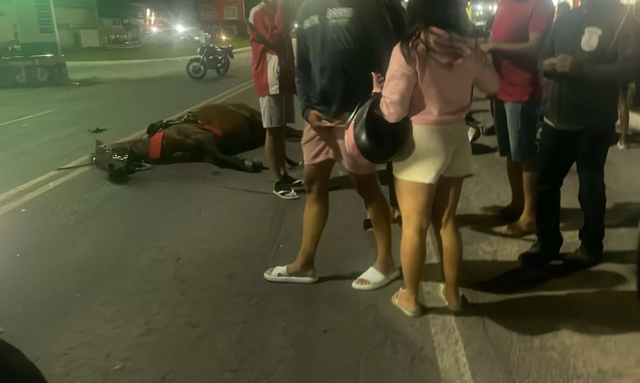 Com o impacto, o animal morreu no local. O motociclista chegou a ser socorrido por uma equipe do SAMU, mas não resistiu e morreu dentro da ambulância. A passageira sofreu ferimentos graves e foi levada ao Hospital Regional.