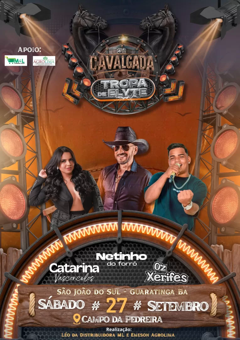 A tradicional Cavalgada Tropa de Elyte chega à sua terceira edição no próximo dia 27 de setembro de 2025, um sábado, prometendo mais uma grande celebração no Campo da Pedreira, em São João do Sul, povoado de Guaratinga.