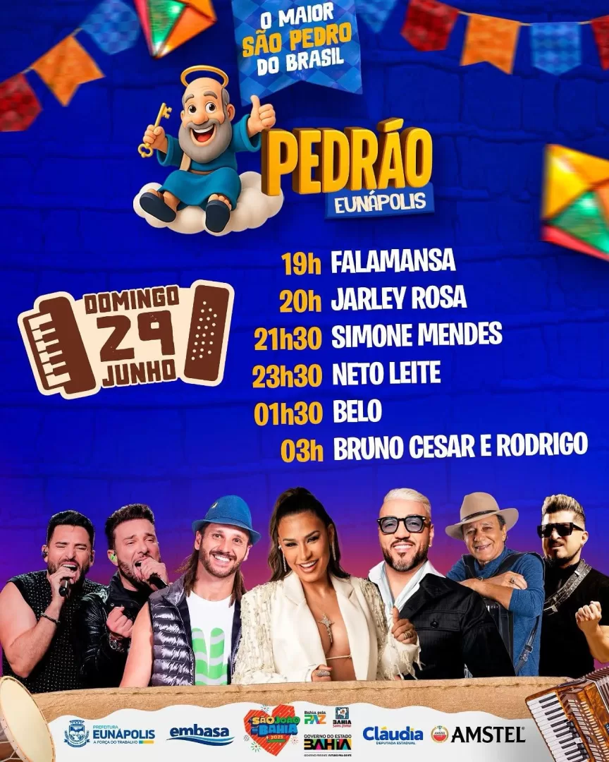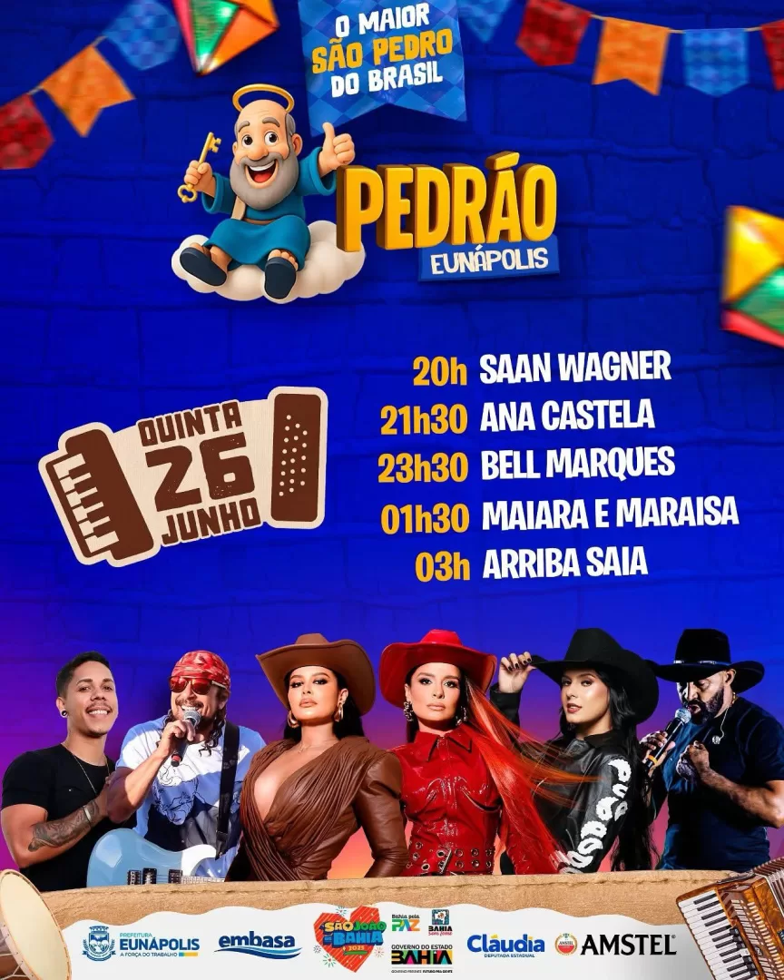 A Prefeitura de Eunápolis dá início, nesta quinta-feira (26), à edição 2025 do Pedrão, consolidado como o maior São Pedro do Brasil. Em clima de festa, cultura e valorização das tradições nordestinas, o evento celebra 20 anos de história e promete atrair um público recorde de moradores, visitantes e turistas durante os quatro dias de programação.