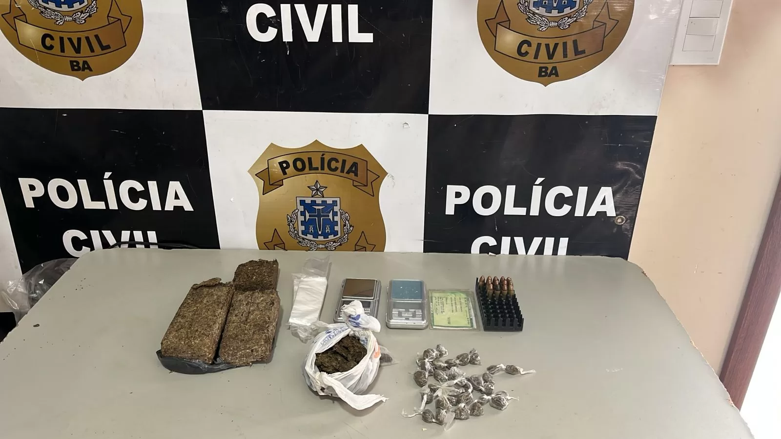 A operação, realizada nas primeiras horas da manhã, cumpriu três mandados de busca e apreensão domiciliar e um mandado de prisão preventiva contra o suspeito M.A.S., flagrado com vídeos de execuções armazenados em seu aparelho celular. Além dele, outro indivíduo identificado como R.J.G. foi preso em flagrante. Durante as diligências, foram apreendidas drogas, balanças de precisão, embalagens para acondicionamento de entorpecentes e munições, confirmando o envolvimento da facção com o tráfico de drogas na região.