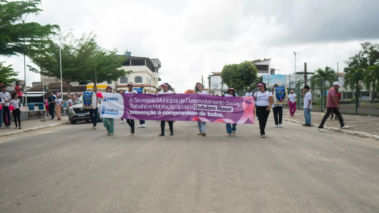 O evento teve concentração na Praça do Barãozinho e seguiu até a Praça do Café, reunindo dezenas de mulheres, profissionais de saúde e representantes de diversas secretarias municipais. A caminhada contou ainda com a participação da Secretaria de Desenvolvimento Social (SEDESTH), que levou a Fanfarra Itabelense, além de equipes da Secretaria de Cultura e de outros setores da administração municipal.