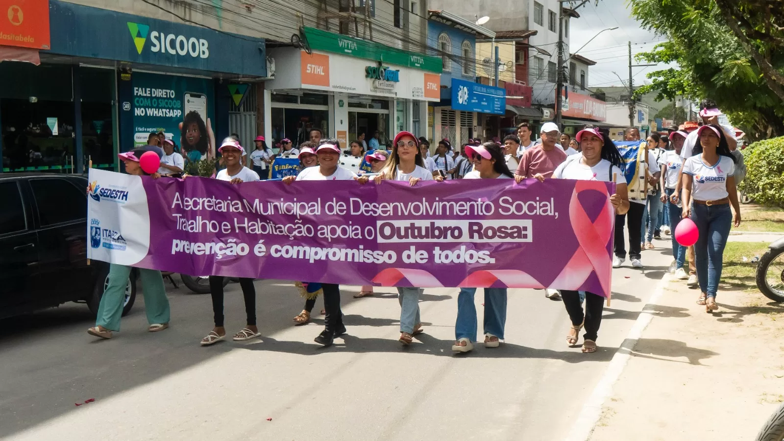Na manhã desta sexta-feira(31), a Prefeitura de Itabela, por meio da Secretaria Municipal de Saúde, realizou a Caminhada de Conscientização do Outubro Rosa, encerrando o mês de atividades voltadas à prevenção e ao diagnóstico precoce do câncer de mama e do colo do útero.