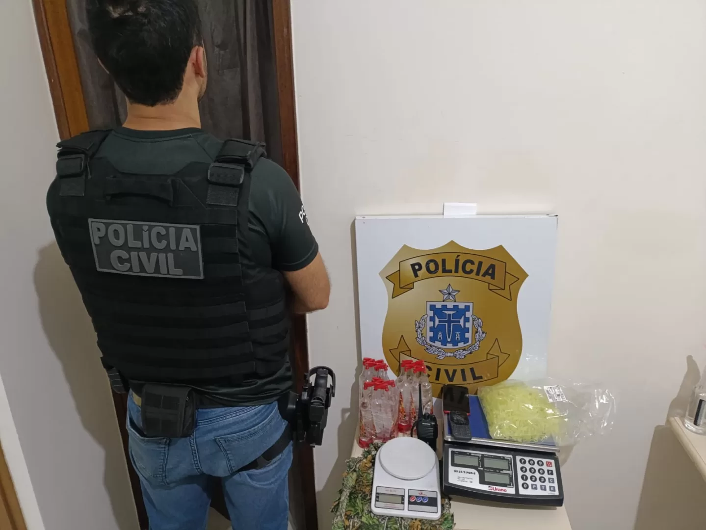 Durante as diligências investigativas, as equipes localizaram uma residência utilizada para o preparo e distribuição de entorpecentes. No local, foram apreendidos diversos frascos de lança-perfume, ependorfes utilizados para acondicionamento de cocaína, balanças de precisão e outros materiais comumente empregados na atividade ilícita.
