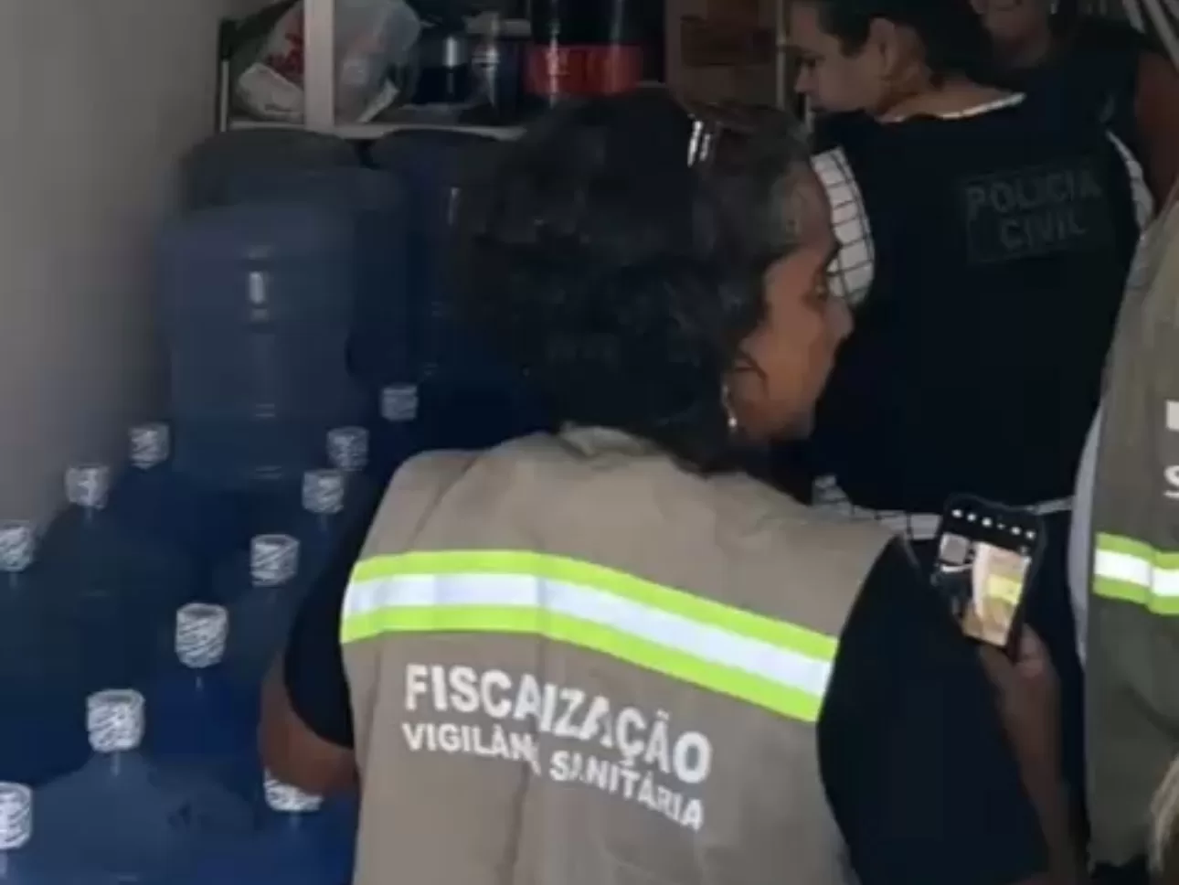 Durante a operação, os agentes localizaram o ponto de venda. No local, encontraram 26 galões de água prontos para comercialização. Em seguida, a Vigilância Sanitária interditou o espaço e realizou testes no produto.