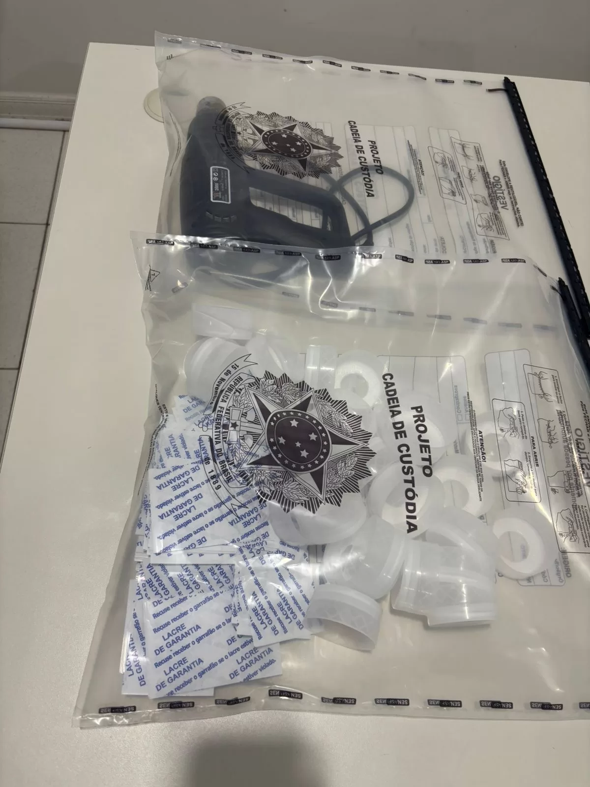 Na sequência, os investigadores identificaram o responsável pelo esquema. Ele envasava os galões dentro da própria residência. Para isso, utilizava água de um poço artesiano, sem controle sanitário ou autorização legal.