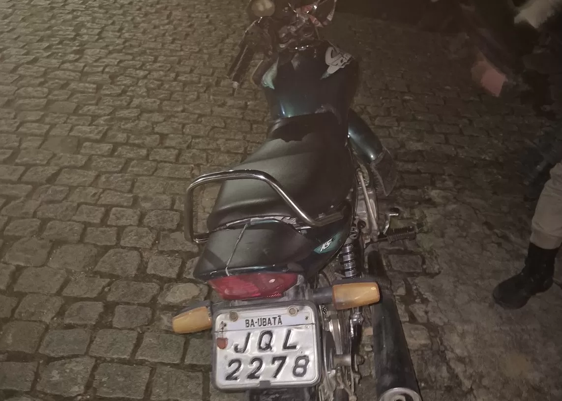 Na verificação dos dados do veículo no sistema policial, os militares identificaram uma restrição de furto/roubo. O condutor informou aos policiais que a motocicleta pertenceria ao seu empregador e que ele utilizava o veículo para se deslocar até o trabalho.