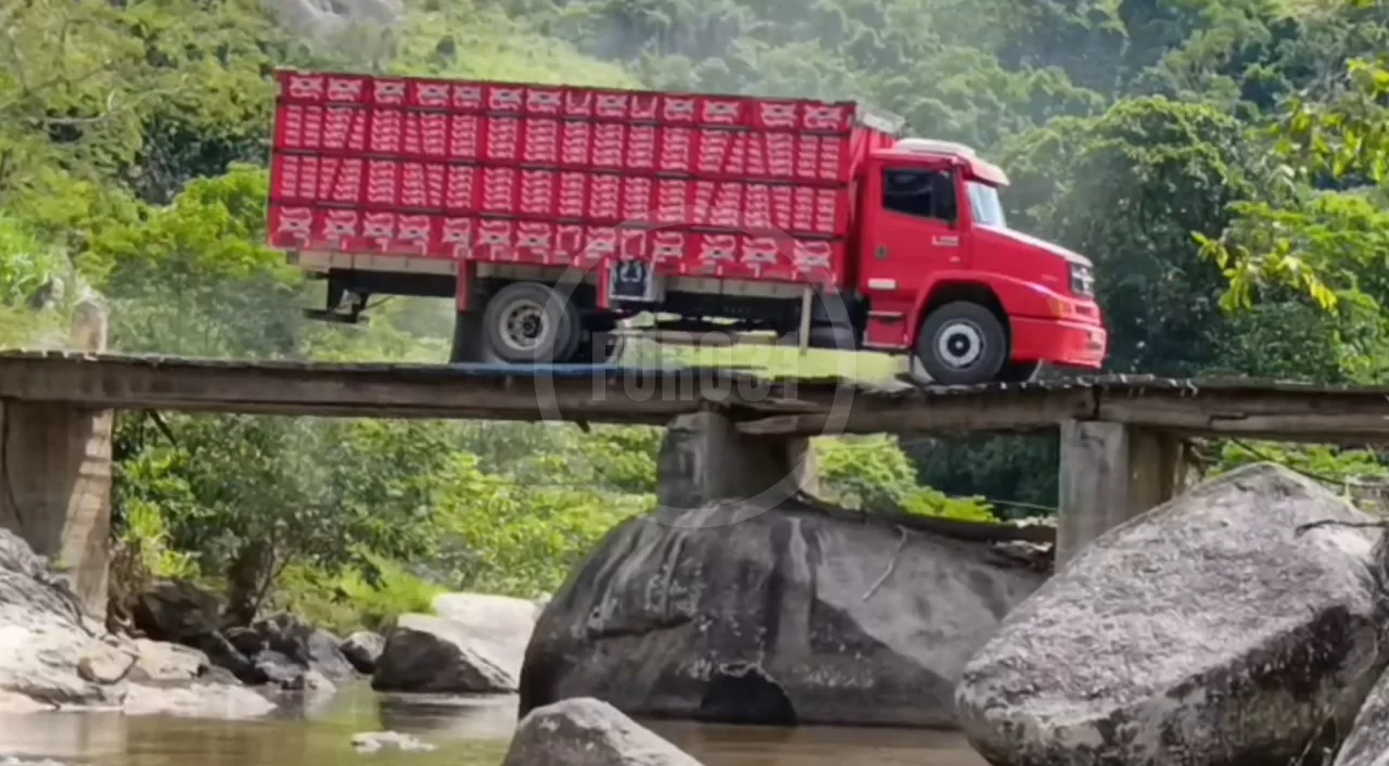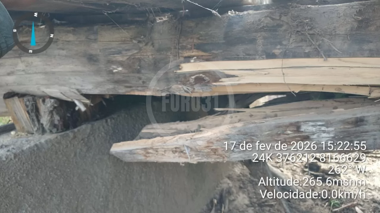 O problema ganhou repercussão após vídeos circularem nas redes sociais nesta terça-feira (17). Nas imagens, veículos atravessam a ponte mesmo com uma viga quebrada na base de sustentação. Caminhões, carros e motocicletas seguem passando pelo local. No entanto, o dano é visível em parte da estrutura de madeira.