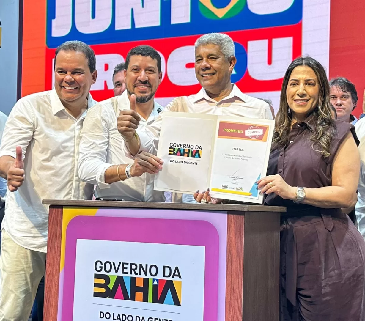 A deputada estadual Cláudia Oliveira também ressaltou o trabalho conjunto e o apoio ao município. “É isso aí, prefeito! Quero te parabenizar pelo seu esforço, pelo seu trabalho, por sua dedicação a uma cidade que lhe escolheu para ser prefeito. Eu tenho muito orgulho de hoje ser a deputada estadual de Itabela e estar ao seu lado para o que der e vier. Vamos juntos, sempre agradecer a ele e ao nosso governador Jerônimo por estar trabalhando tanto pela Bahia e Itabela, e a gente fica muito feliz com isso.”