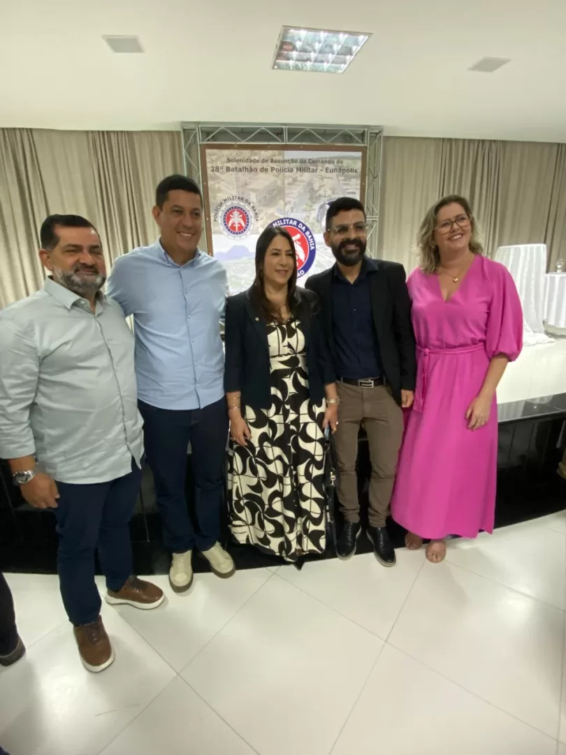 O Prefeito Gandhi participou, nesta terça -feira (30/09) ,da solenidade de assunção do novo comandante do 28° Batalhão de Polícia Militar, em Eunápolis. O ato reuniu diversas autoridades civis e militares, reafirmando a relevância da integração entre os municípios e a corporação no fortalecimento da segurança pública da região.