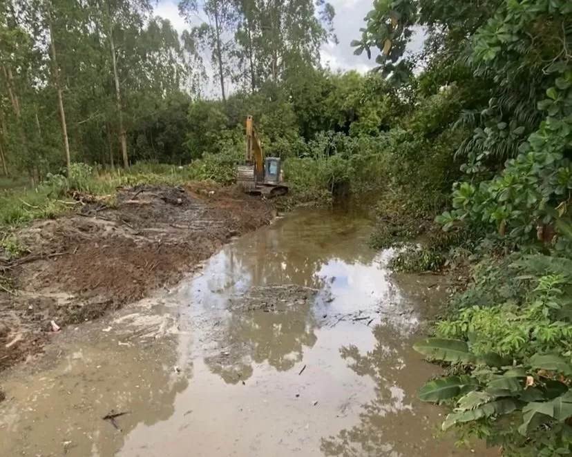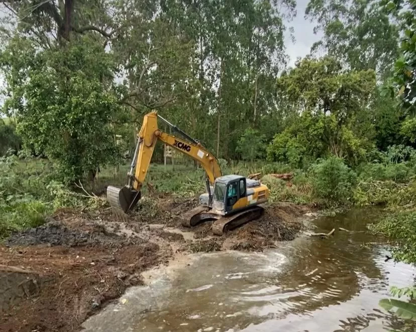 O trabalho inclui a retirada de lixo, entulho e sedimentos acumulados, com o objetivo de melhorar o fluxo das águas e prevenir alagamentos.