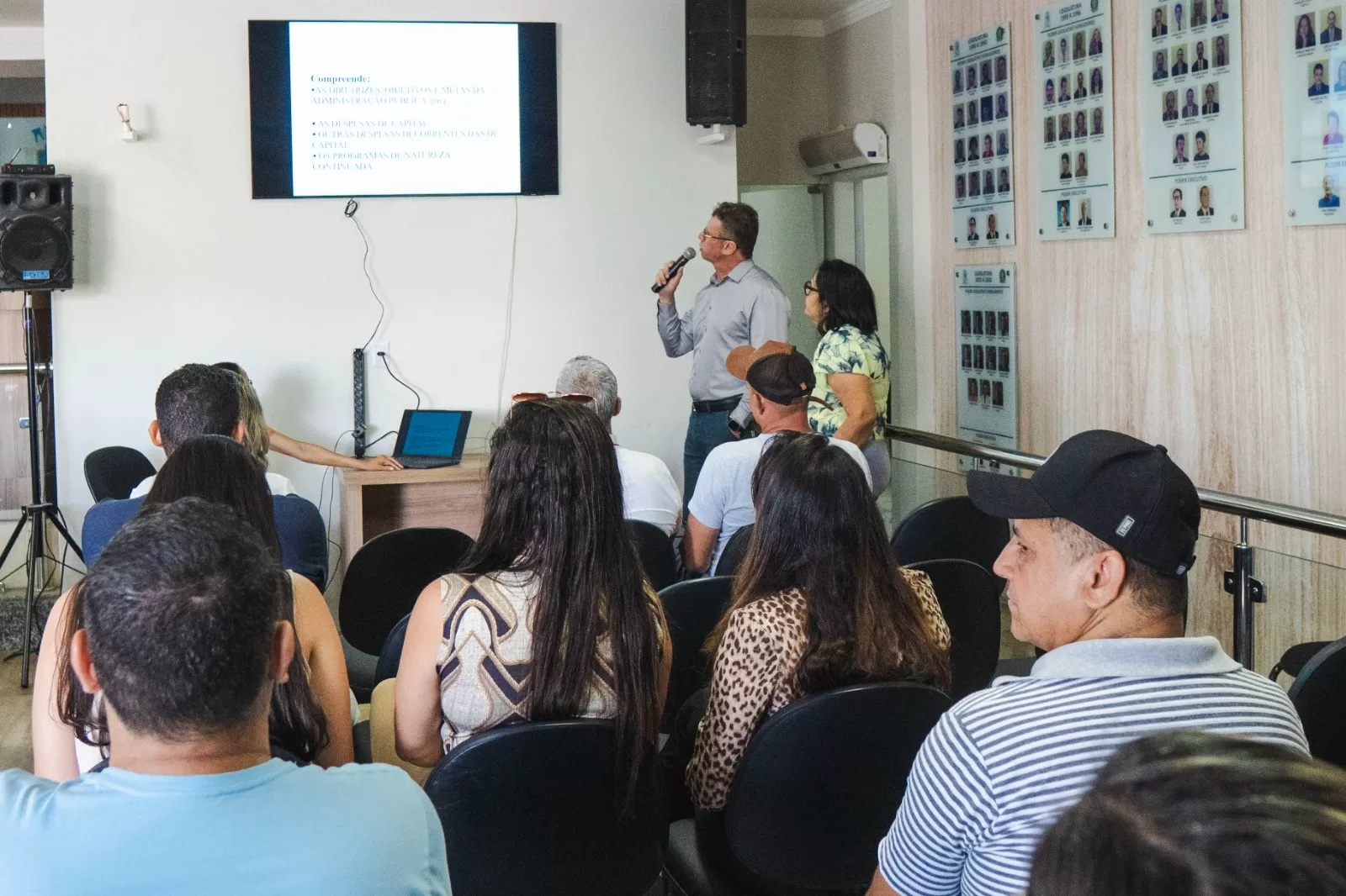 A audiência foi conduzida pelo controlador interno da Prefeitura, Edgar Goulart, e pela consultora contábil Ivani Moreira, que apresentaram os principais eixos do PPA e do anteprojeto da LOA. Durante a exposição, foram detalhadas as metas fiscais, as prioridades de governo e a distribuição dos recursos públicos entre as diversas áreas da gestão, como saúde, educação, infraestrutura, assistência social e agricultura.