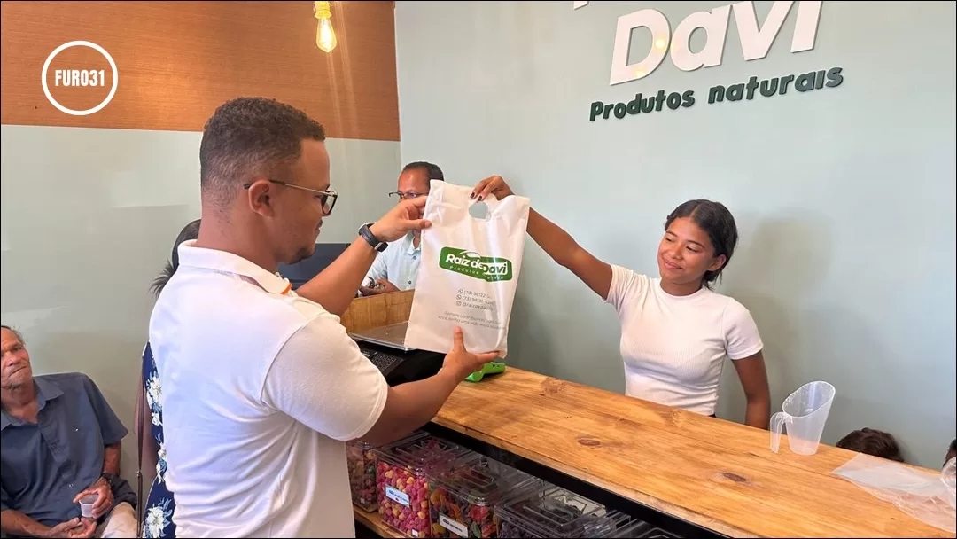 “A Raiz de Davi surgiu, como você disse, há sete anos, a primeira loja, mas a ideia veio um pouco antes, há nove anos atrás. Começamos ali vendendo uma pomada, um vinagre de maçã e foi crescendo naturalmente. É a primeira loja exclusiva de produtos naturais de Guaratinga e a gente vem aprendendo a atender essa necessidade, conhecer a necessidade do cliente e colocar dentro da loja.” Explicou Alandions Menezes, Sócio-Proprietário.
