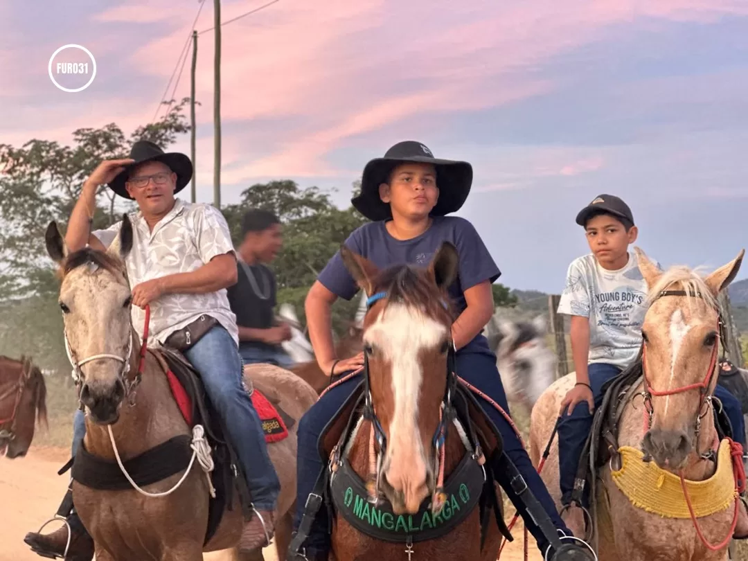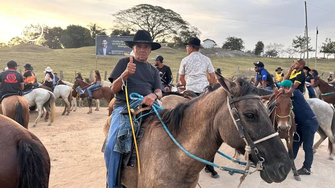 A cavalgada também foi um momento de união entre gerações. O vaqueiro Mauro Bandeira compartilhou a alegria de estar ao lado do filho, Jovino Lucas, o caçula da família: “Sempre incentivei ele a montar no cavalo, gosta de mexer com gado, é o vaqueiro da família.”