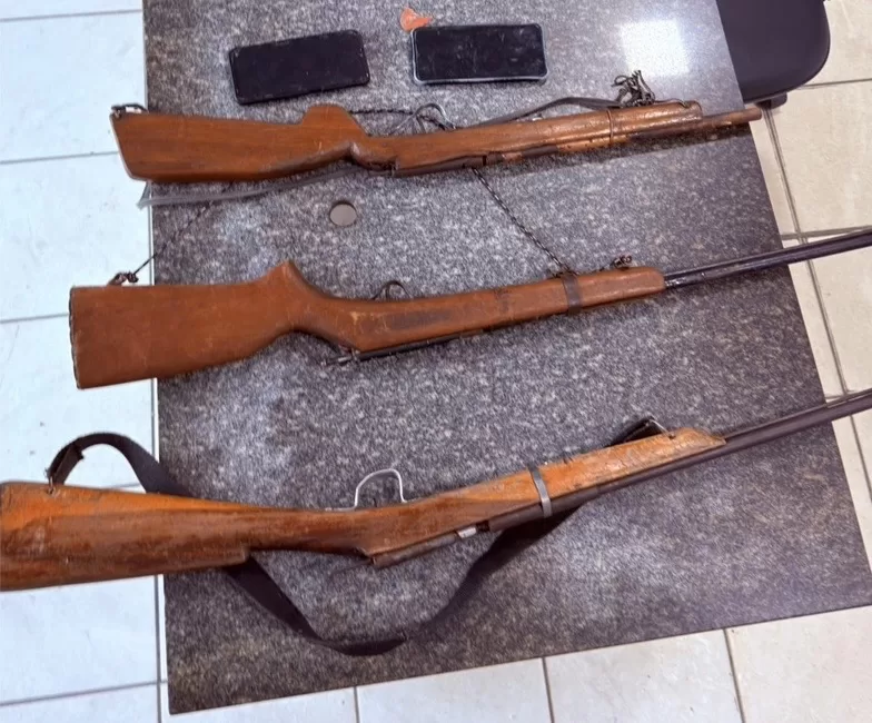 Durante o cumprimento de mandados de prisão temporária e de busca e apreensão, os policiais encontraram três armas de fogo e um veículo com sinais identificadores adulterados na casa do investigado.