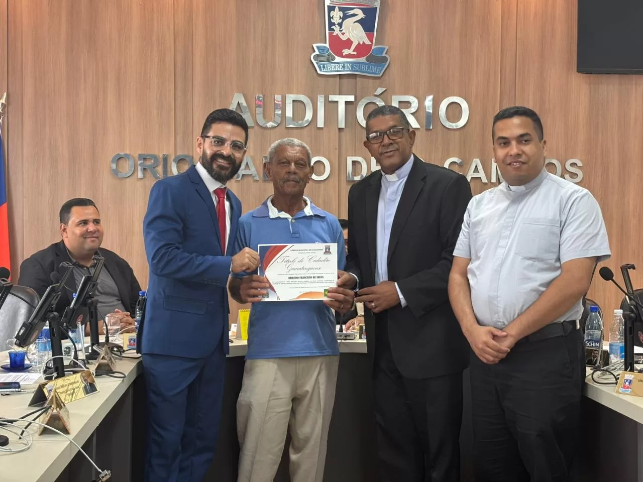 Além das lideranças religiosas, também foi agraciado com o Título de Cidadão Guaratinguense o comunitário Orozino Francisco de Souza, conhecido como Seu Ló. Emocionado, ele resumiu sua gratidão em poucas palavras: